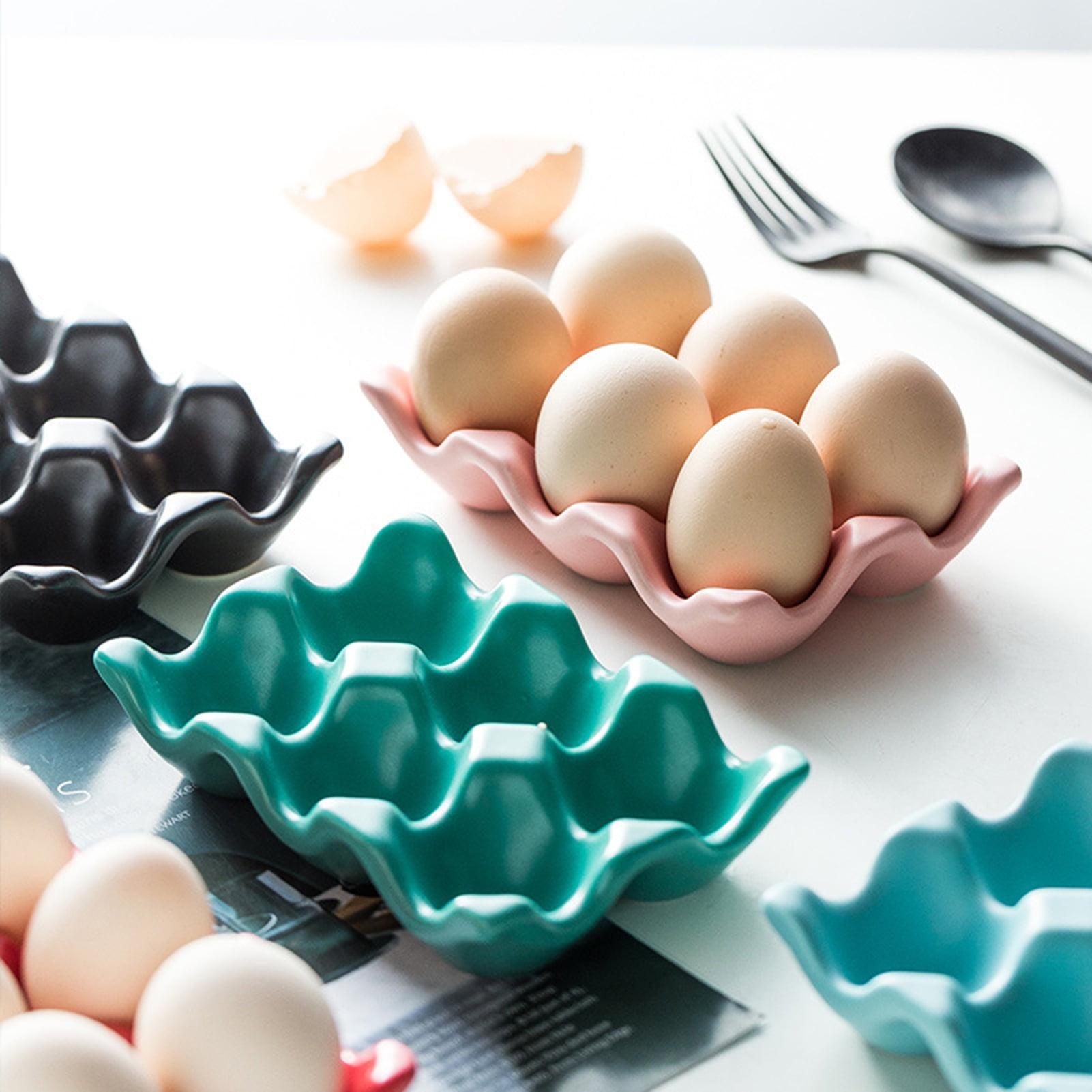 Egg Holder Anti-Slip 6 Grids Ceramic Eco-Friendly Egg Container for Kitchen