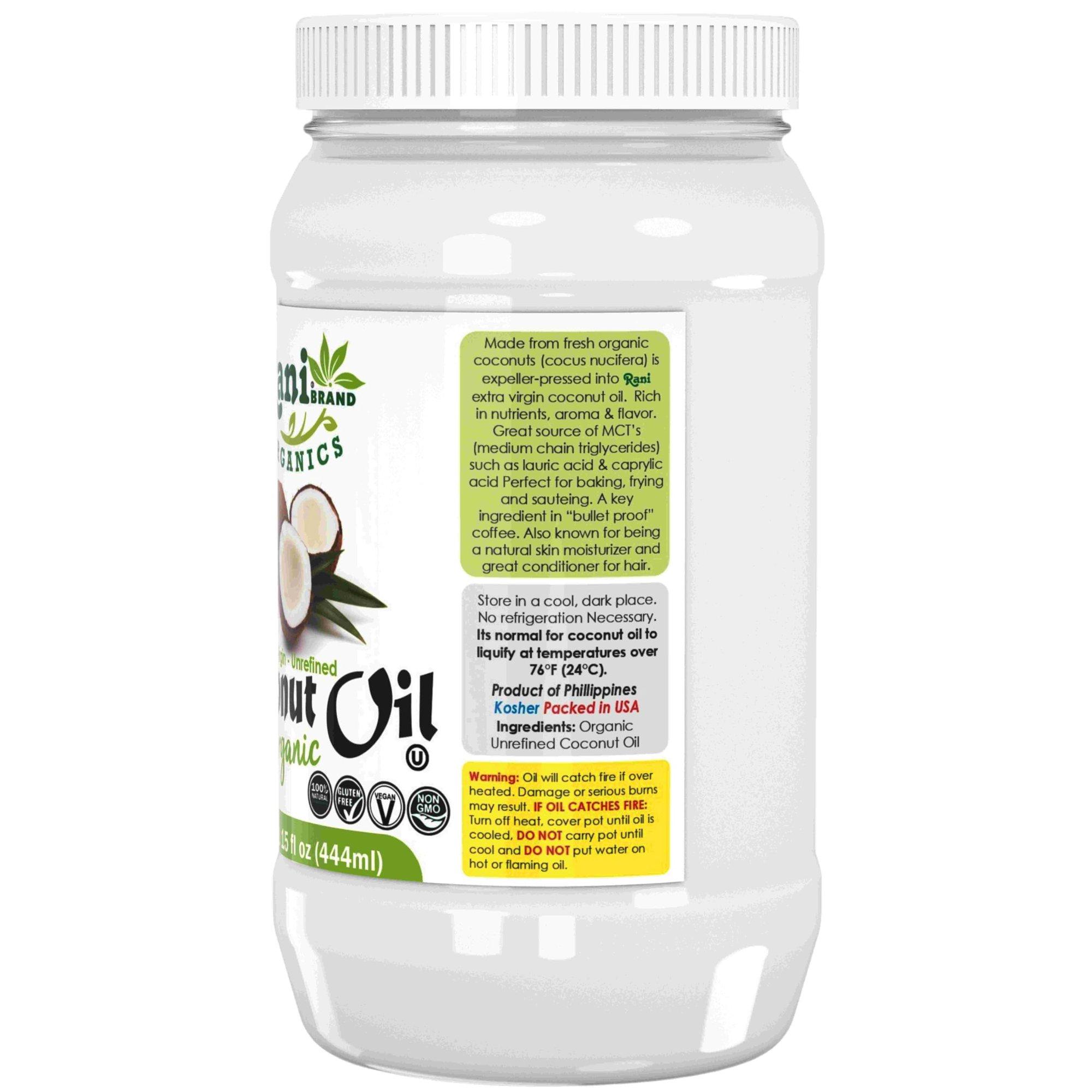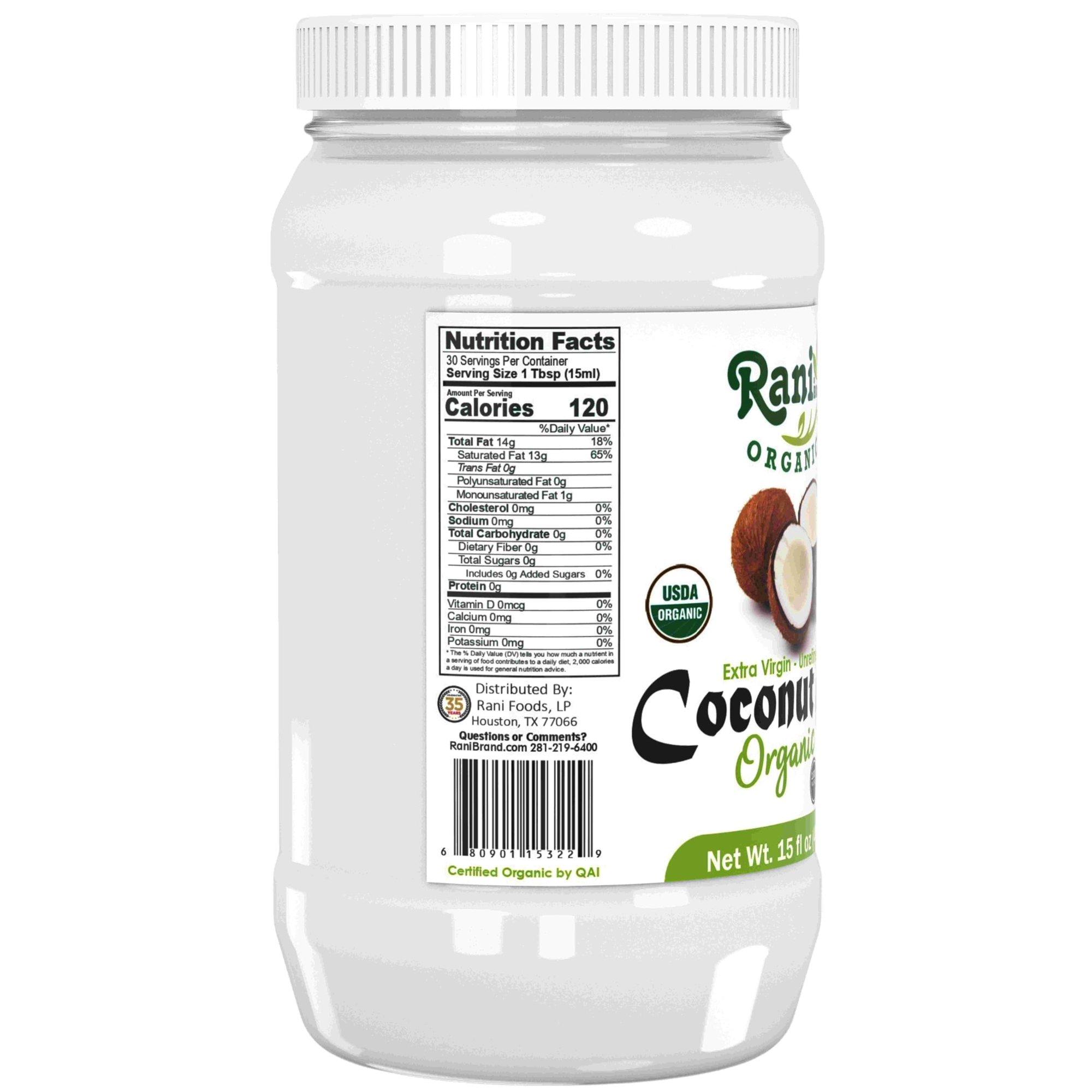 Rani Organic Extra Virgin Coconut Oil, Unrefined 15 fl oz (444ml) Pack of 12, NON-GMO | Gluten Free | Kosher | Vegan | 100% Natural | Packed in USA | USDA Certified Organic