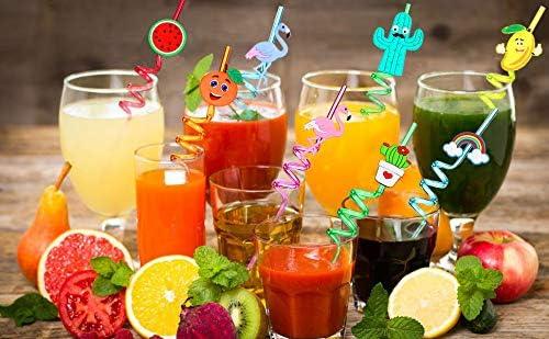 FZR Legend 24 Flamingo Fruit Cactus Reusable Plastic Straws,Hawaiian Beach Cocktail Luau Party Decorations Supplies Favors (24 SET)