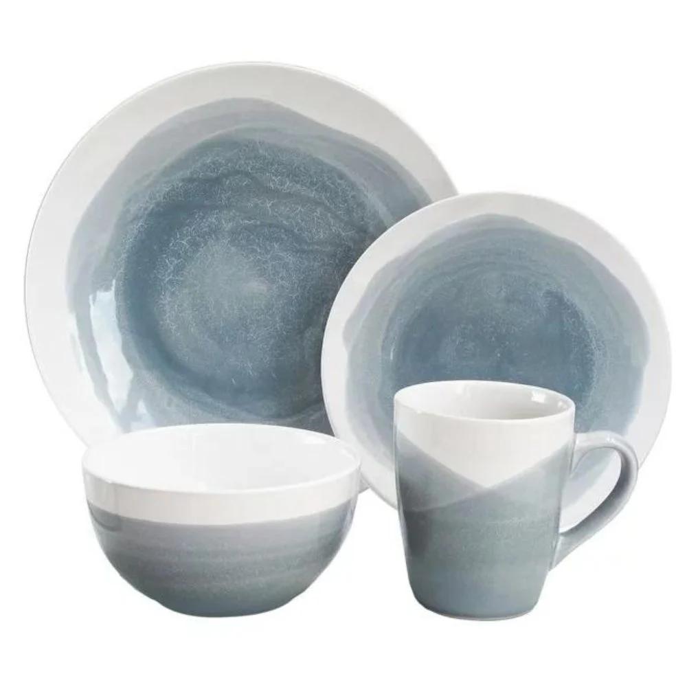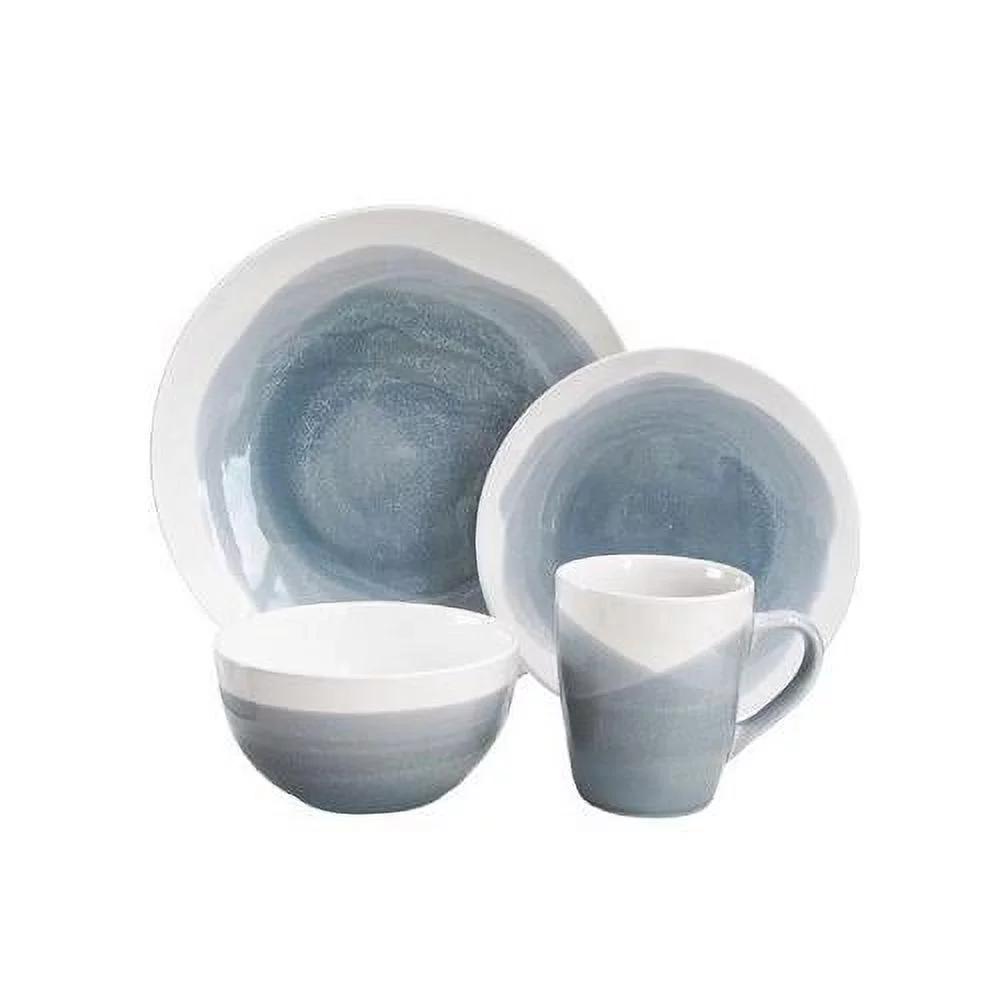 American Atelier, Round, Oasis Blue Gray Brushstroke Stoneware Dinnerware Set, 16-Piece