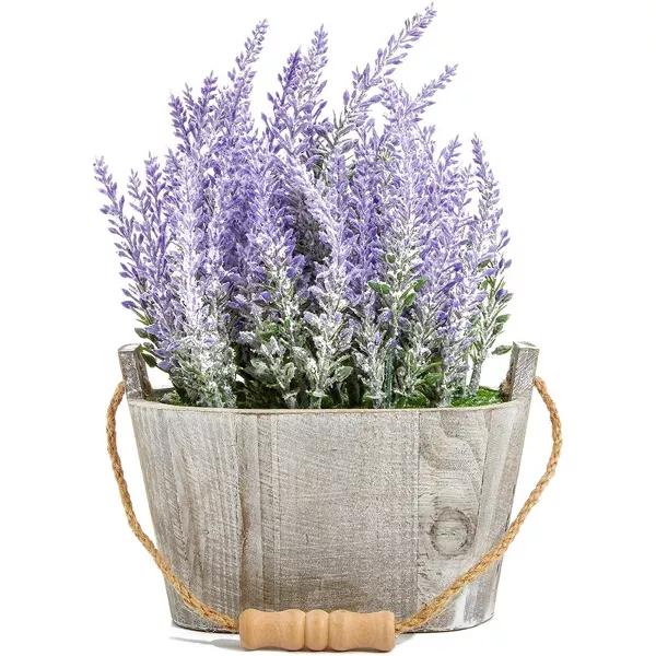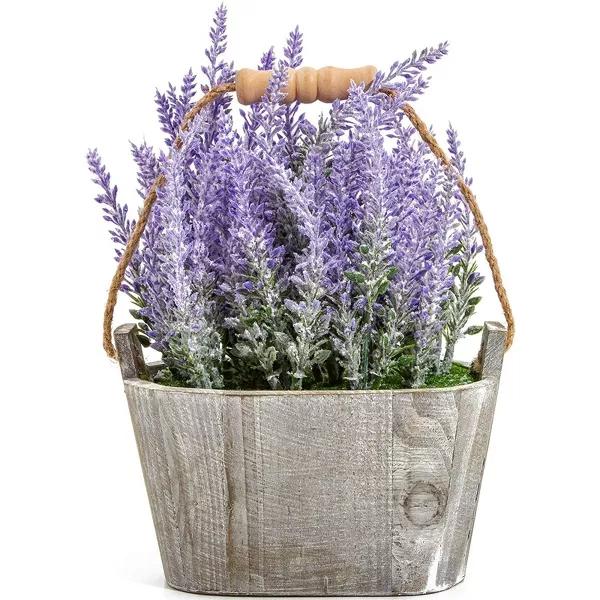 Artificial Lavender Fake Flower Plant in Rustic Oval Wooden Box for Decorations
