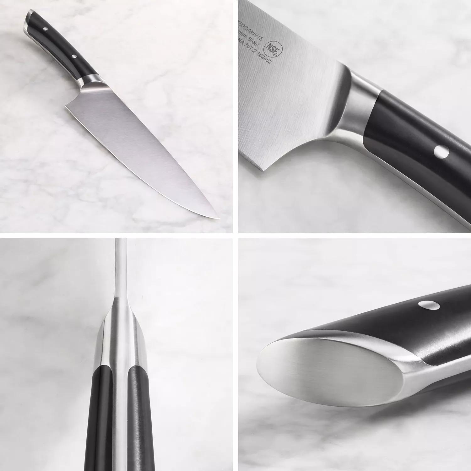 The Helena Chef’s Knife is one of the kitchen’s most essential and versatile tools. Designed for both push cuts and the popular rocking motion, this blade is perfectly shaped for slicing, dicing, mincing, and chopping a wide variety of meats, vegetables, and fruits. The wider blade on the chef’s knife assists in maintaining control for a straight top-to-bottom cut through tougher foods, like starchy root vegetables. The length makes for a comfortable and nimble extension of the hand.