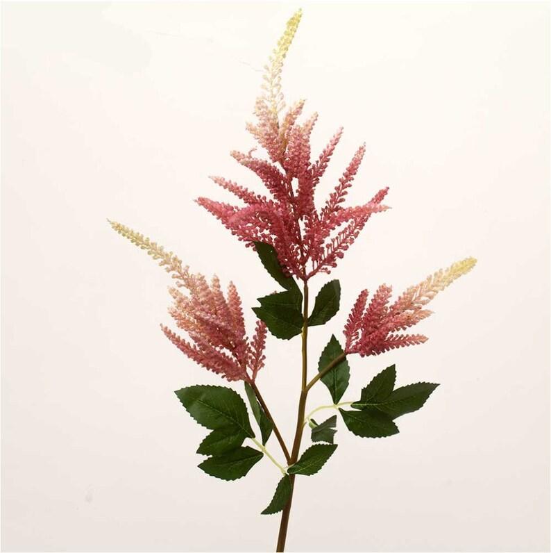 Freshen up your space with simplistic beauty and a touch of color. Astilbe Bush features a green plastic stem that flares out into plumes of Cerise/Cream/Pink blossoms.