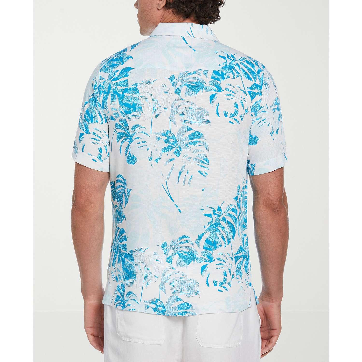 Embrace fresh, tropical style with this men's pattern shirt from Cubavera. It's crafted from textured viscose fabric that drapes comfortably on the body with a modern geometric palm print to add a unique touch.