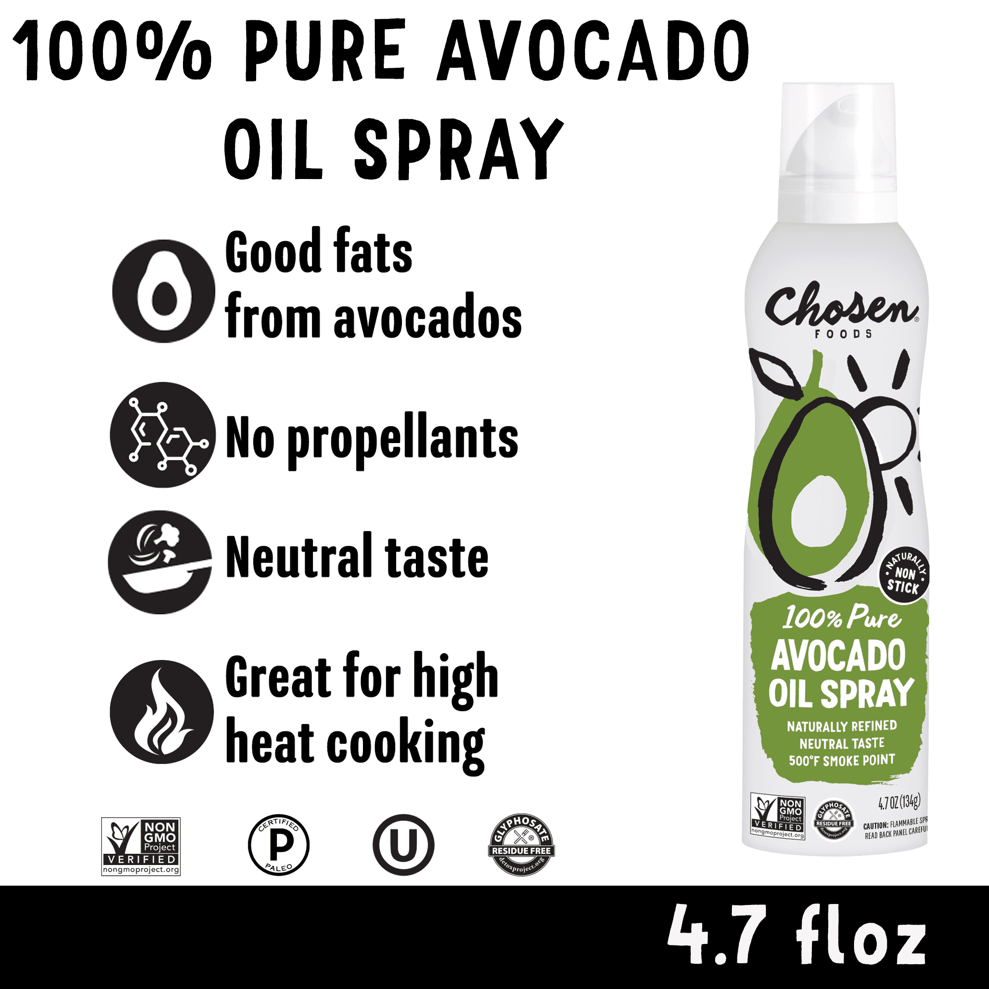Chosen Foods 100% Pure Avocado Oil, 4.7 fl oz Cooking Spray, Non-GMO