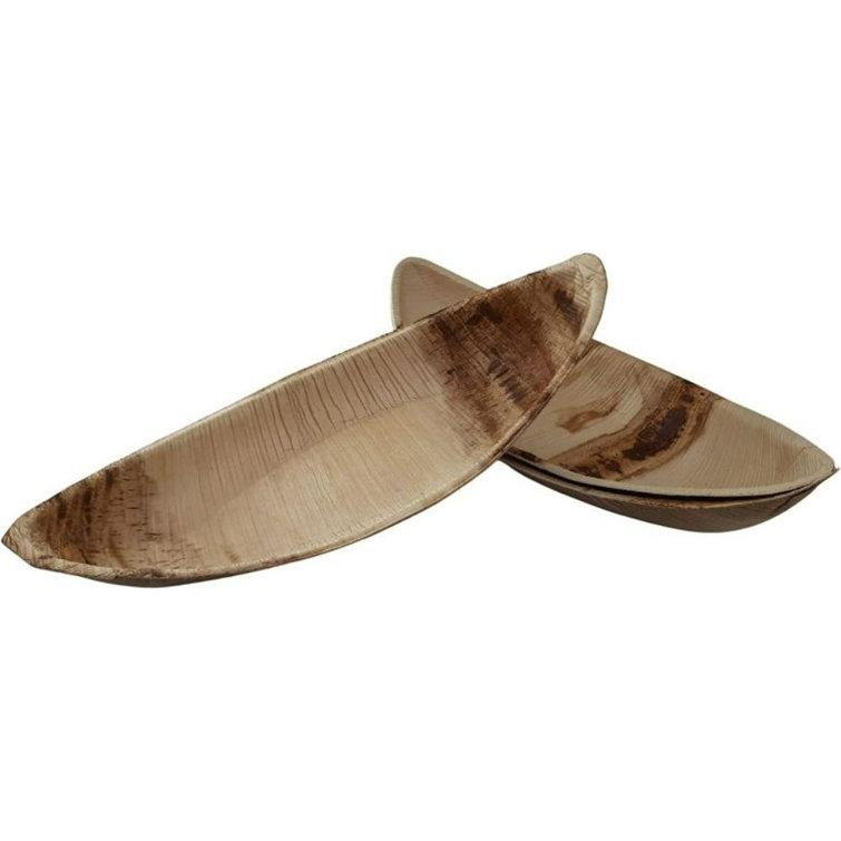 This 25 piece pack includes a set of disposable Charcuterie Platter Tray i.e. 11x5 inch boat shaped palm leaf tray. Like Bamboo tray, these trays are eco-friendly compostable trays and are wooden tray lookalike.