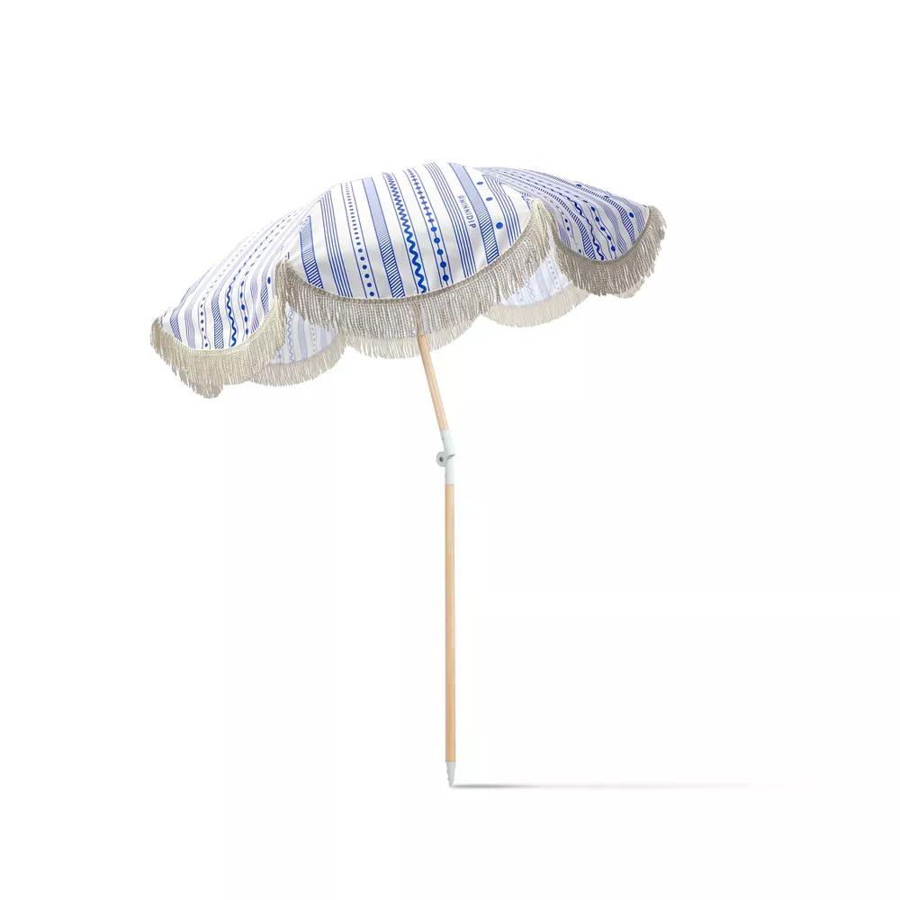 Designed in Chicago by Emily Vaca of La Vaca, the NAUTICAL STRIPES Minnidip Beach Umbrella of the limited-edition, Target-exclusive Resort Collection turns your backyard or beach hangout into a chic resort destination.