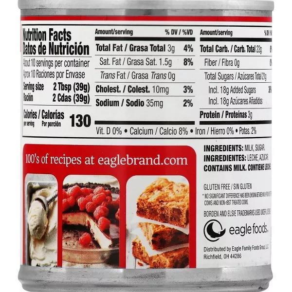 Fill your desserts with the sweet flavor of Sweetened Condensed Milk from Eagle Brand. Pure and simple ingredients like real sugar and milk are combined to create this perfect base for all your favorite recipes. Make easy fudge in the microwave by just adding butter and chocolate chips or use it for a classic pumpkin pie that'll make your mouth water. No matter what tasty treat you're whipping up in the kitchen, this can of decadent condensed milk is a must-have staple for any baker's pantry.