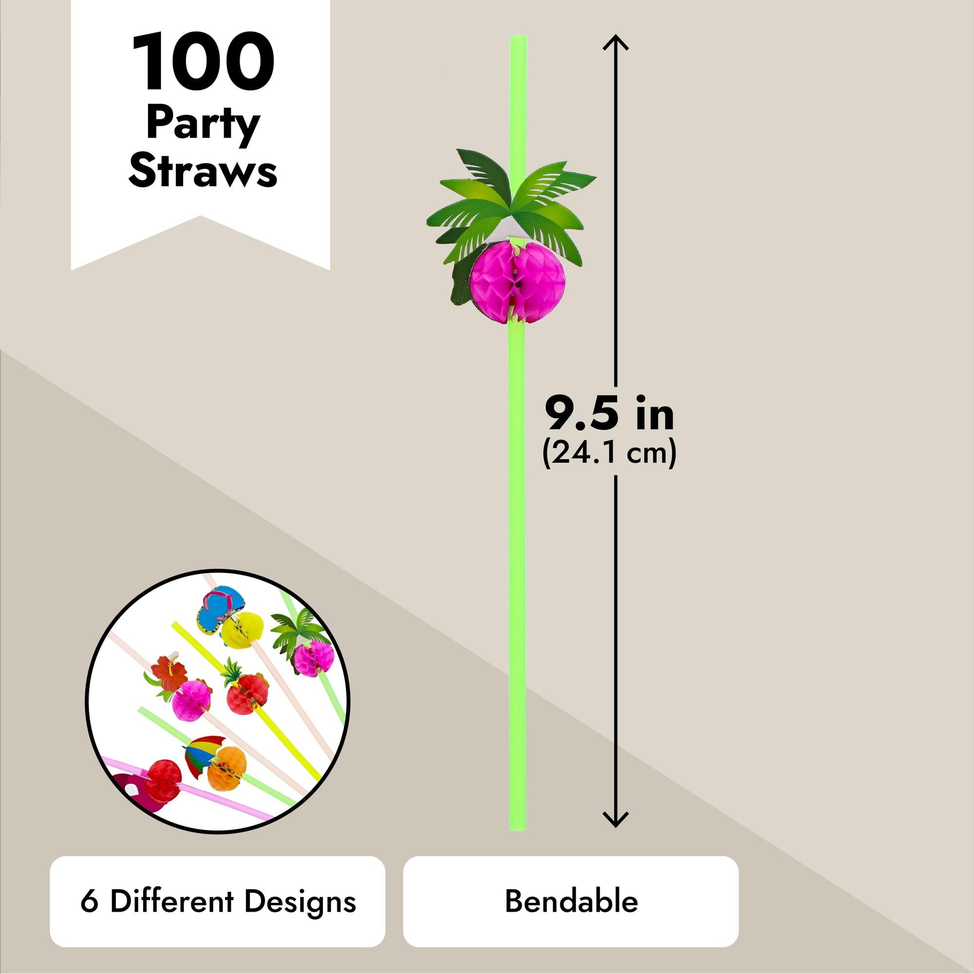 100 Pack Tropical Hawaiian Straws for Cocktails and Margaritas