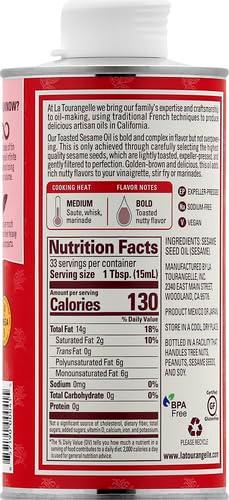 La Tourangelle, Toasted Sesame Oil, Great for Cooking, Add to Noodles, Stir-Fry, Vegetables, Vinaigrettes, and Marinades, 8.45 Fl Oz