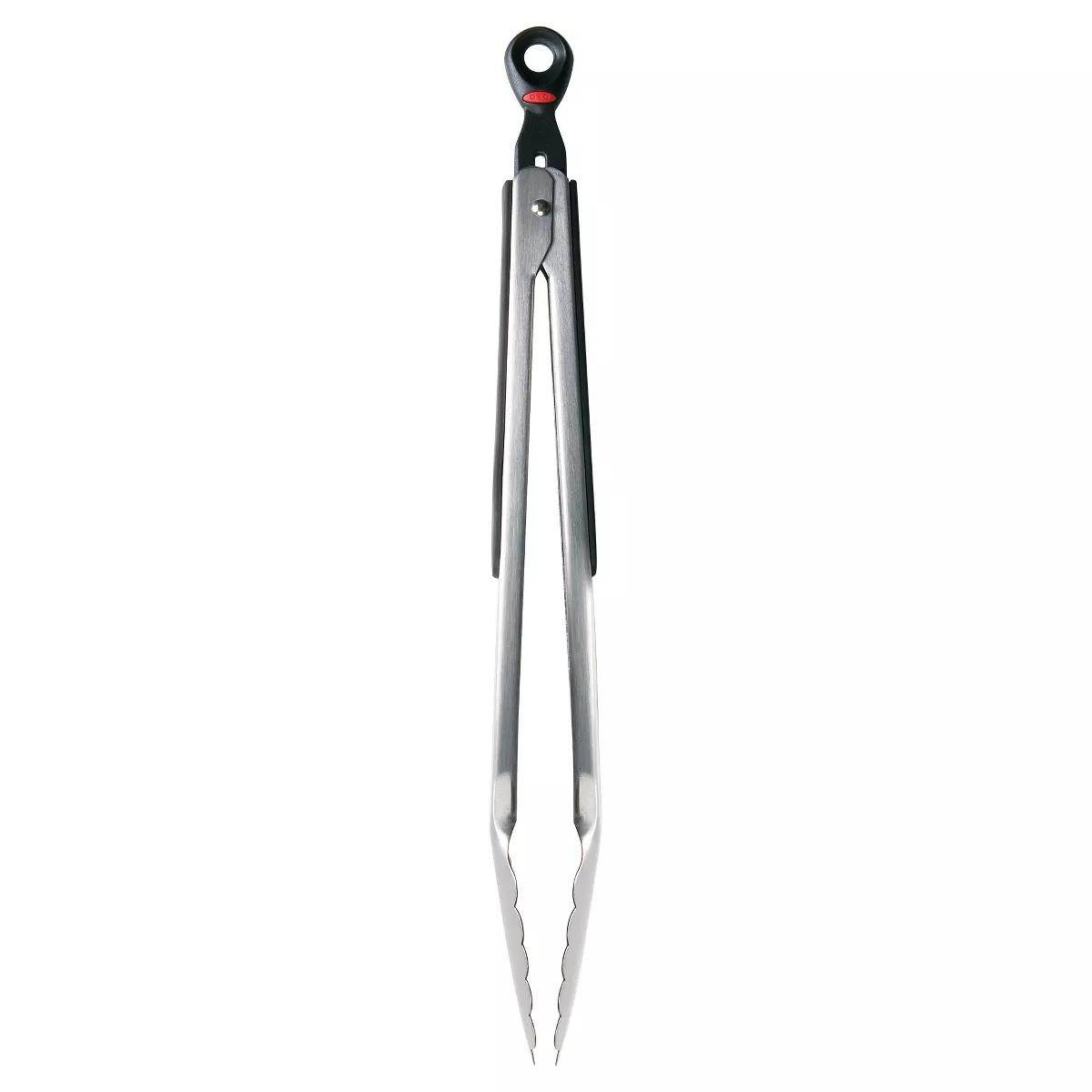 The OXO SoftWorks 12-Inch Locking Tongs provide extra reach when grabbing thin asparagus spears, flipping thick steaks and much more. The Tongs are made of brushed stainless steel and feature scalloped heads for a secure hold on food.