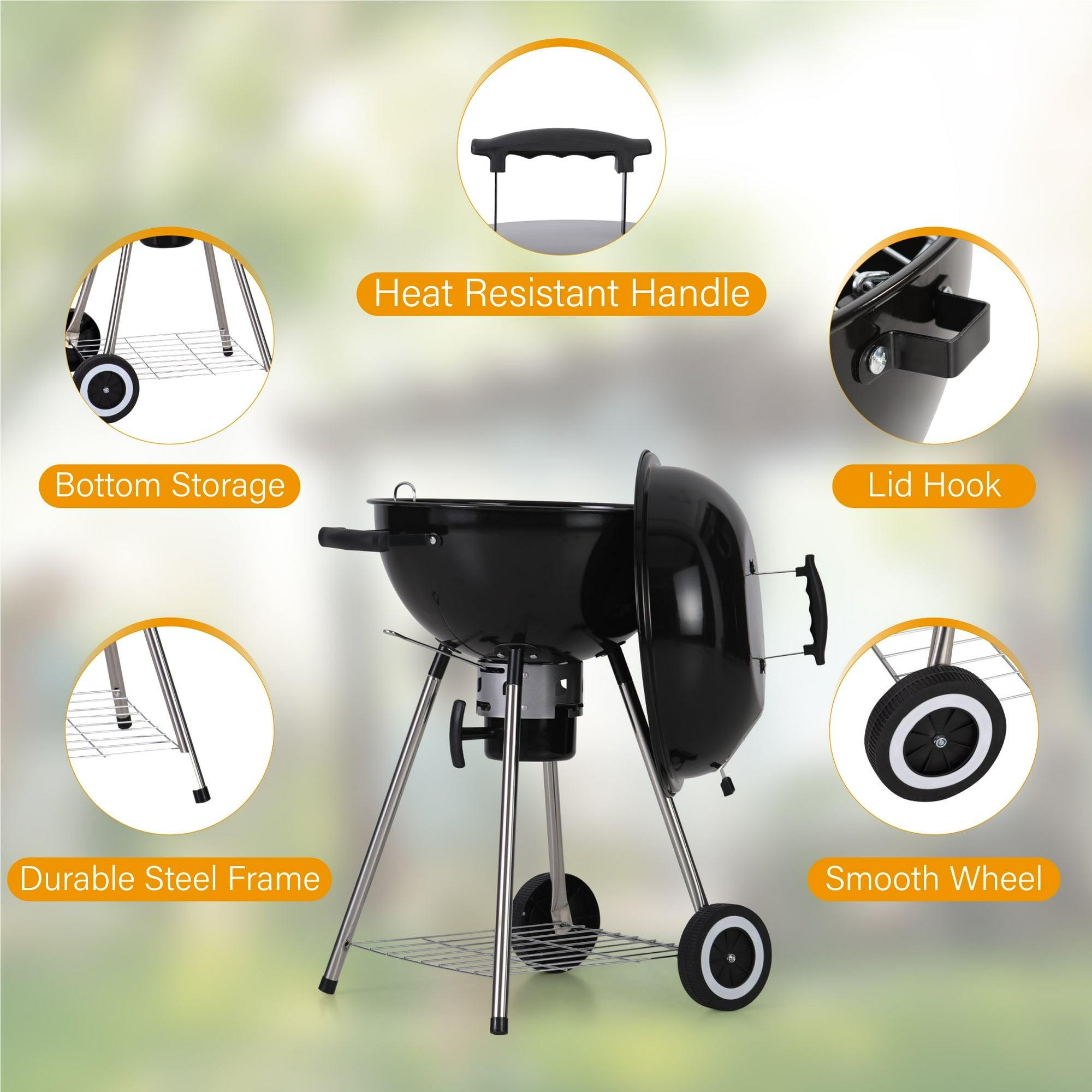 Sophia & William Portable 18" Kettle Charcoal BBQ Grill with Ash Catcher and Wheels