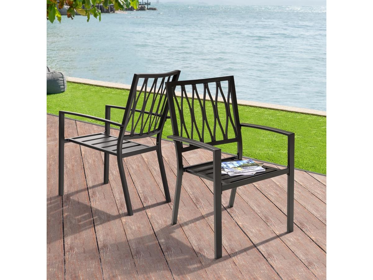 Nuu Garden Outdoor 2-Piece Iron Chair Set pairs any outdoor furniture in your patio. The diamond pattern creates an artistic inspiration and nostalgic vibe that can add a classic touch to your outdoor living.