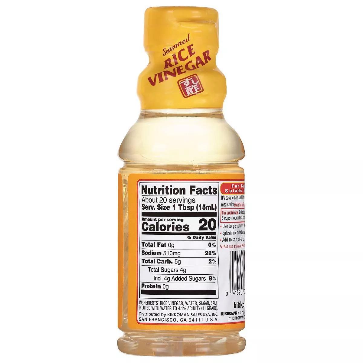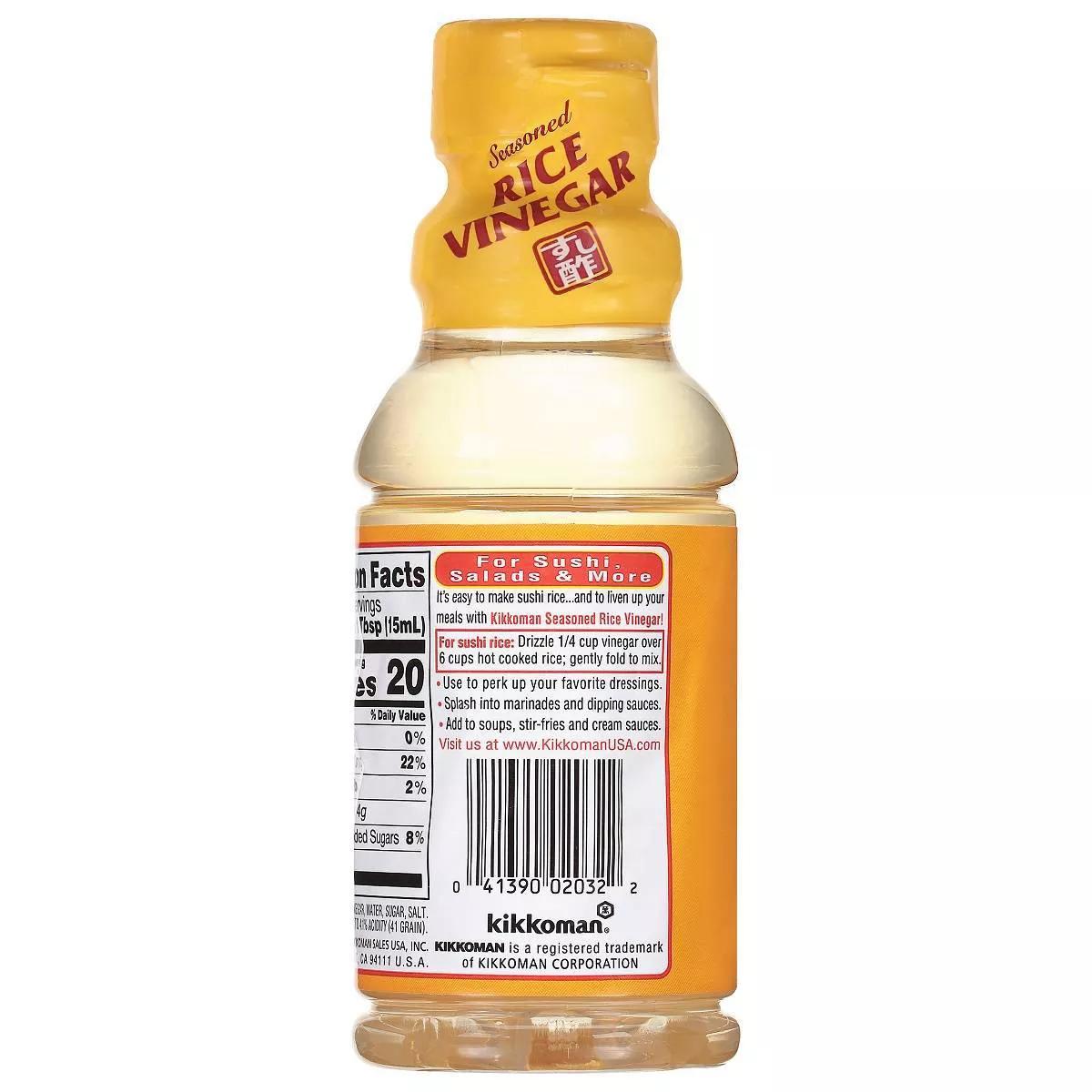 Kikkoman Seasoned Rice Vinegar is perfectly seasoned with salt and sugar and less acid than regular Rice Vinegar. It is Kosher Certified and contains no preservatives, no high fructose corn syrup, and no MSG.