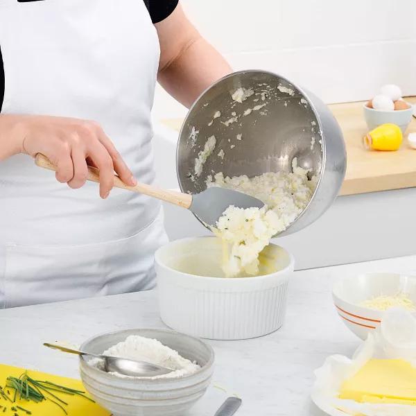 The Flex-Core® Spatula Set features five unique spatulas. Each item features a nylon core that adds rigidity and strength. The ergonomic handles make for comfortable grips, and the silicone material will protect your non-stick cookware. Flexible edges give the right amount so that nothing is left in the bowl.