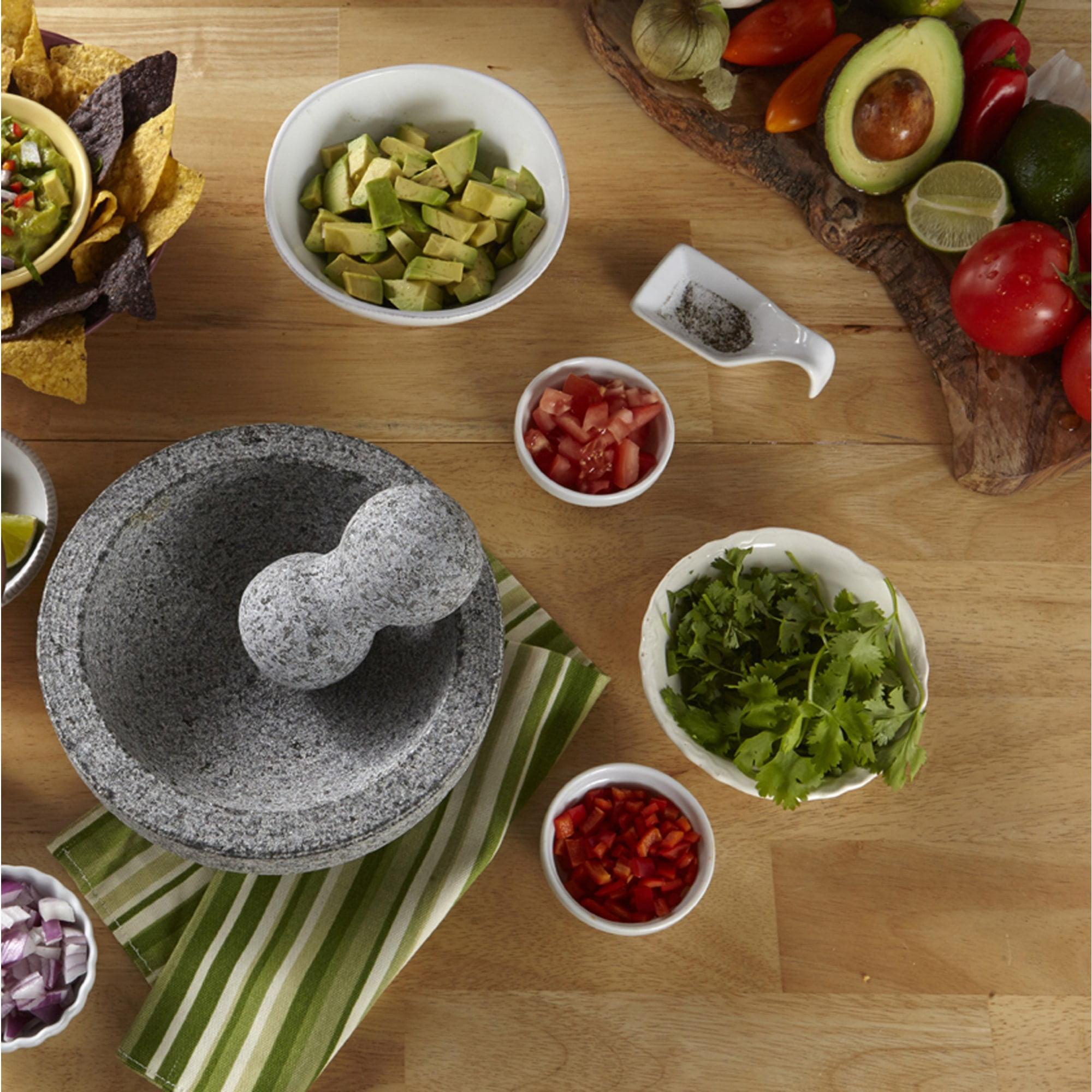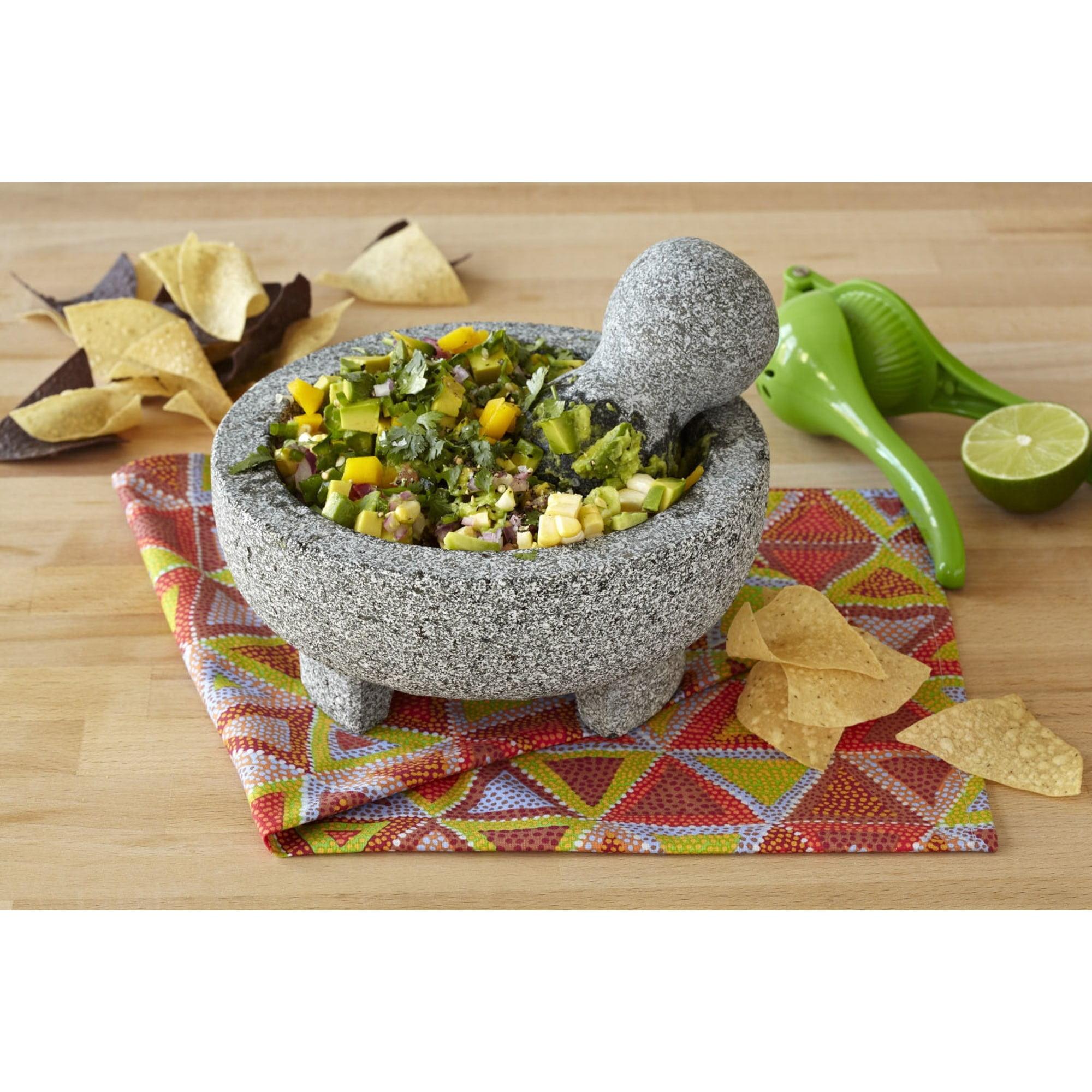Crush It! Made from ultra-durable natural granite, this IMUSA molcajete extracts essential oils from herbs and spices dried & fresh. Granite’s nonporous qualities prevent it from absorbing those oils, keeping the flavor in your food and not in the tool. The weight of the stone provides stability and makes pounding a cinch. This molcajete is large enough to grind up a party-size batch of guacamole, then mix and serve it in the same bowl. So break out the tortilla chips and let’s have a fiesta party. This tool is required for creating a lot of traditional Mexican dishes, including salsa guacamole, and much more. This molcajete measures 6.1" x 6.1" x 3.1" and weighs 5.73 lbs. Use the IMUSA Molcajete to crush spices, herbs, nuts, medicine pills, and more.