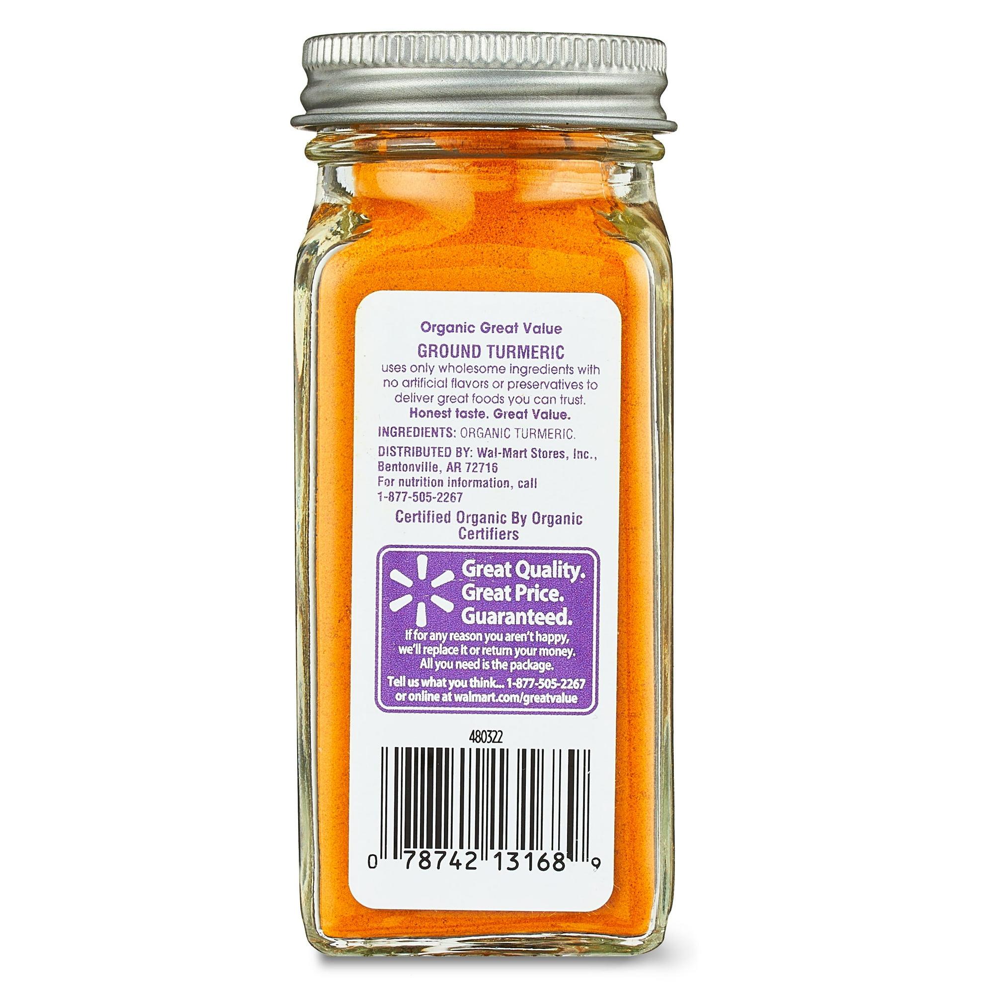 Experience the beautiful color and delicious flavor of Great Value Organic Ground Turmeric. With a deep golden color and a slightly sharp, peppery flavor, this spice brings a natural warmth to veggies, soups, and curries and adds a pop of color to rice dishes and cheese sauces. Turmeric is also known as a powerful antioxidant that holds anti-inflammatory properties. Try making Golden Milk by heating coconut milk, turmeric, ginger, honey, and a dash of black pepper for a warm, soothing drink before bed. Great Value Organic Ground Turmeric is a pantry multi-tasker that is good for you and adds fantastic flavor.