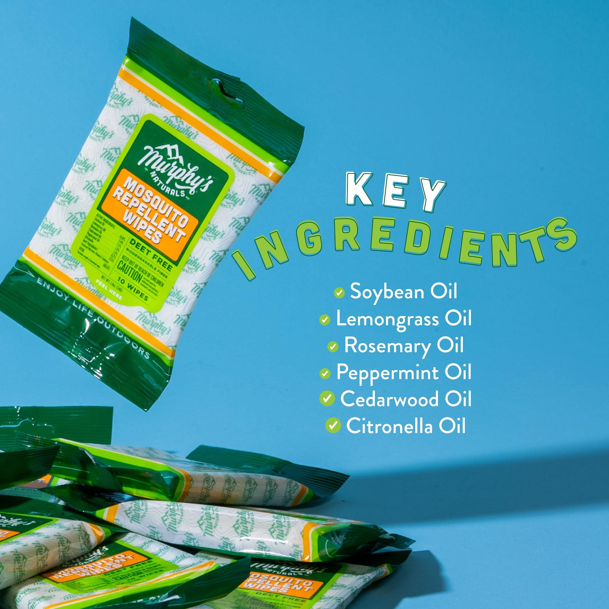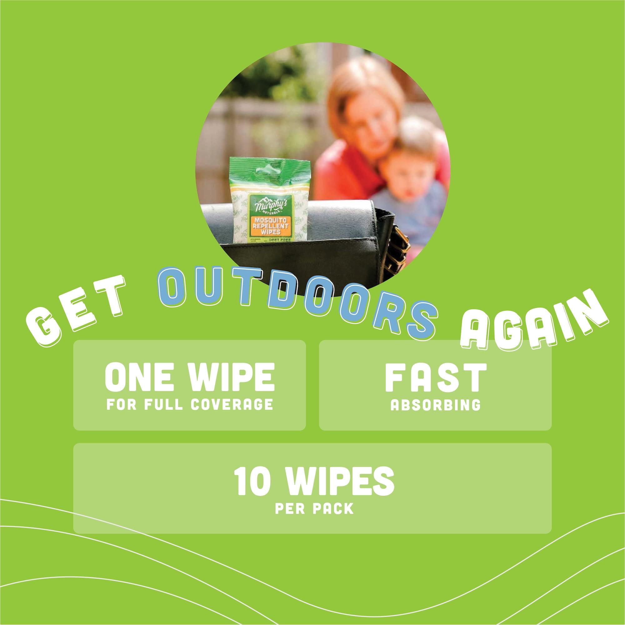 Murphy's Naturals Mosquito Repellent Wipes | DEET-Free, Plant-Based Formula | Travel Sized, Easy to Use | 10 Wipes Per Pack