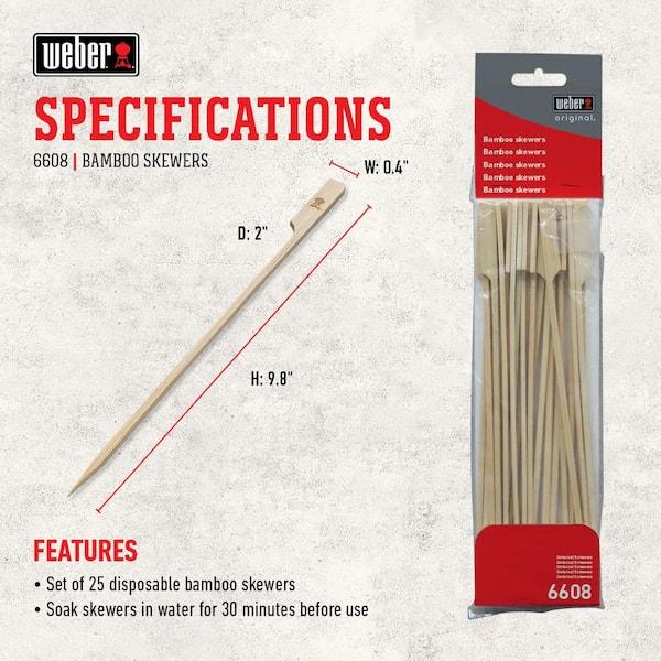 Get grilling in style with Weber branded bamboo skewers. Made from sustainably harvested bamboo, these skewers are perfect for your next kabob dinner. Great for making dessert options too, liked grilled pineapple or pears.