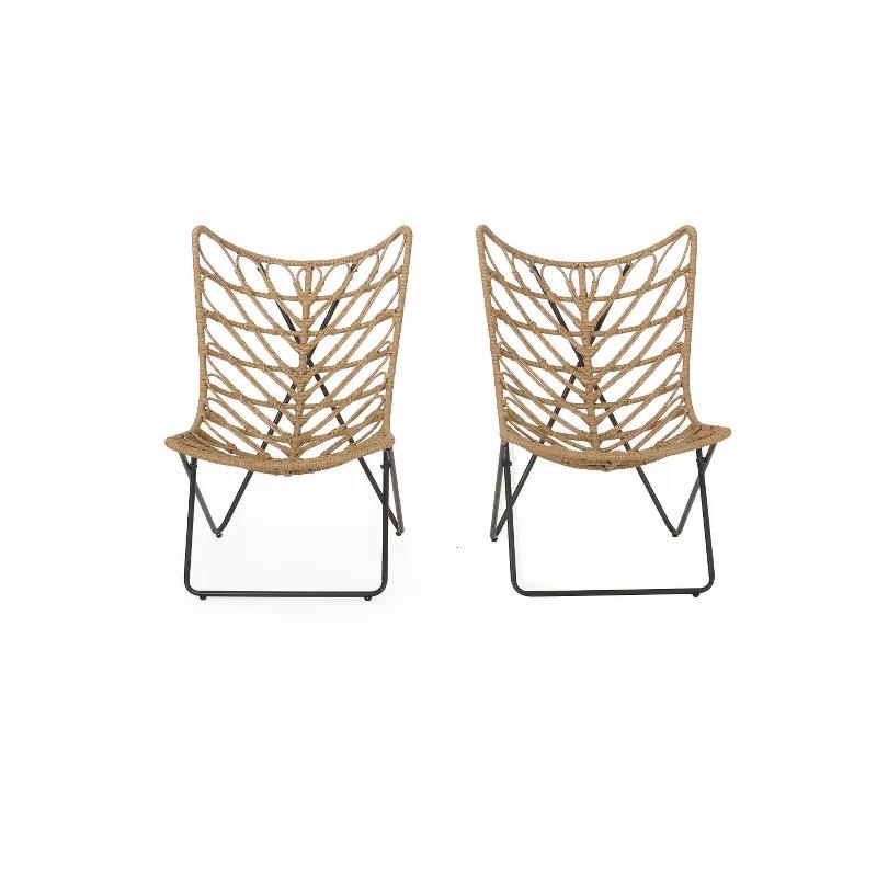 Our 2-piece Patio Accent Chairs set features a wicker finish that provides an earthy boho look for any patio or backyard space. Featuring graceful curves contrasted by clean lines, this set maintains a comfortable and reliable design. Each chair is finished with a geometric cross base, making this modern aesthetic ideal for any style of decor. This isn't merely a chair - it's an open invitation to unwind, reminisce, and create lasting memories under the open sky.