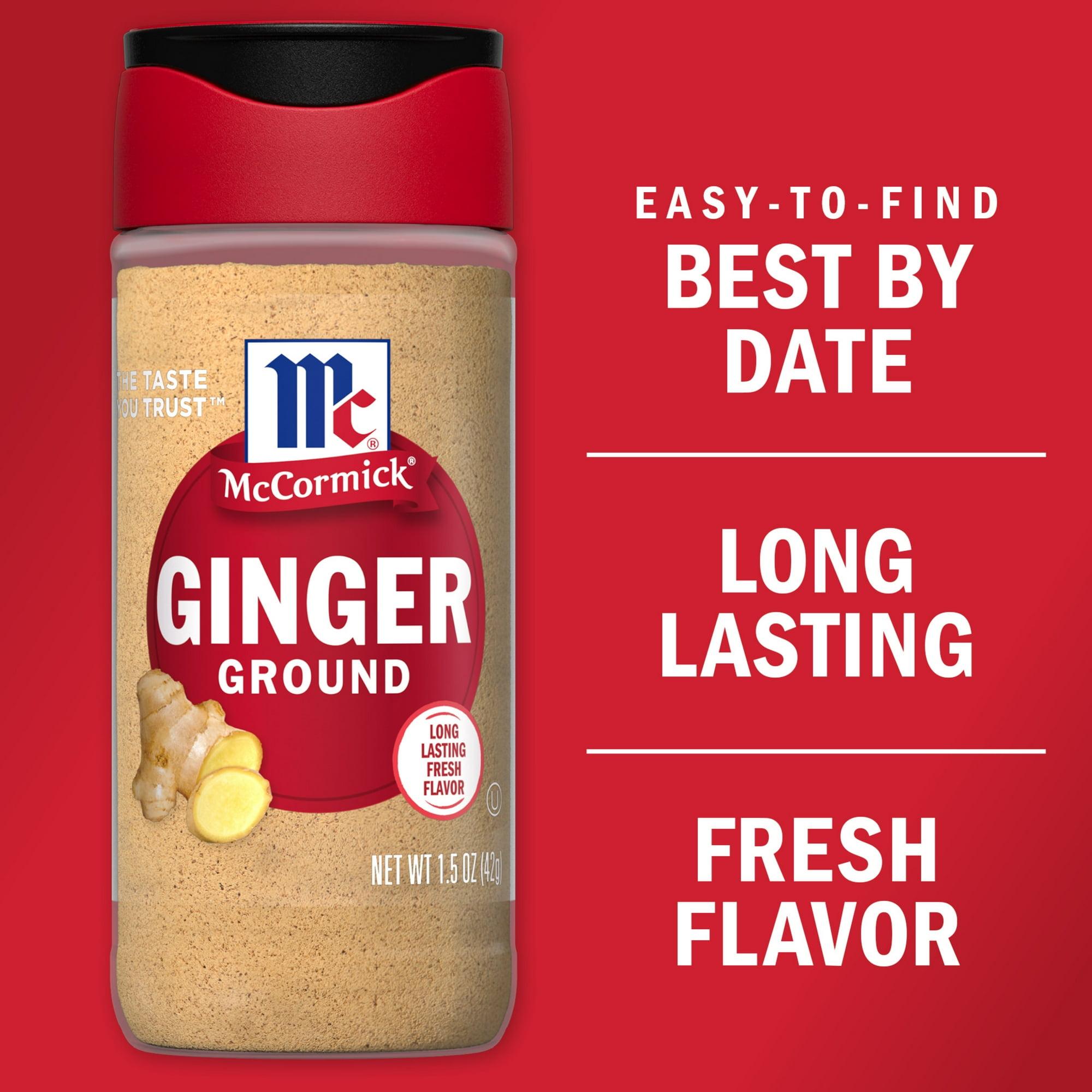 McCormick Ground Ginger, 1.5 oz Bottle. Ginger is a rhizome, a knobby root-like bulb that grows underground. McCormick hand-picks its ginger for sweet and zesty flavor - perfect for sweet desserts, savory dishes and especially holiday recipes. Ginger was one of the first spices brought from Asia to the Western world by the spice caravans. Thanks to its warm, spicy flavor, it’s enjoyed all over the world. Holiday desserts like spice cakes, pumpkin pie and gingerbread depend on its spicy warmth.
