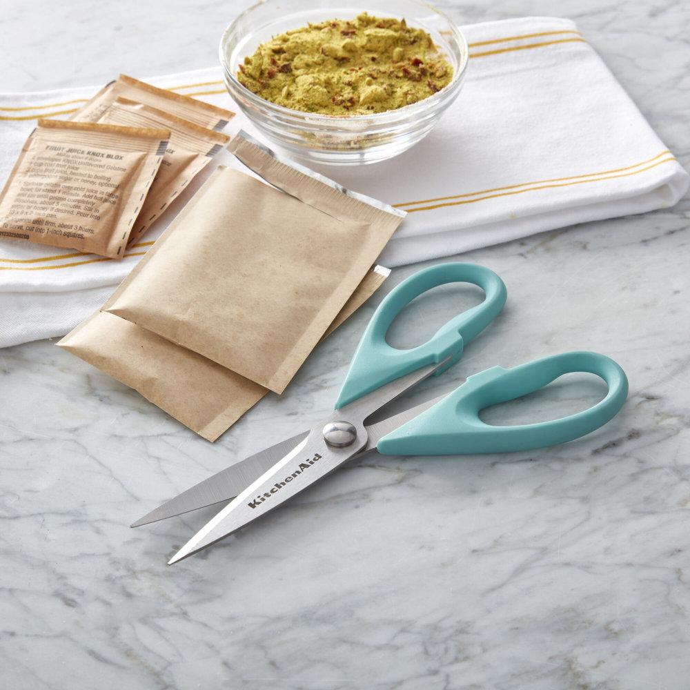 These KitchenAid Shears with Soft Grip Handles will be one of the most valuable tools in your kitchen. You will find yourself using them for many short cuts and everyday tasks. Heavy duty shears feature a sharp 420 stainless steel blade and soft comfort grip handle. Dishwasher safe. 8-3/4 inch long.