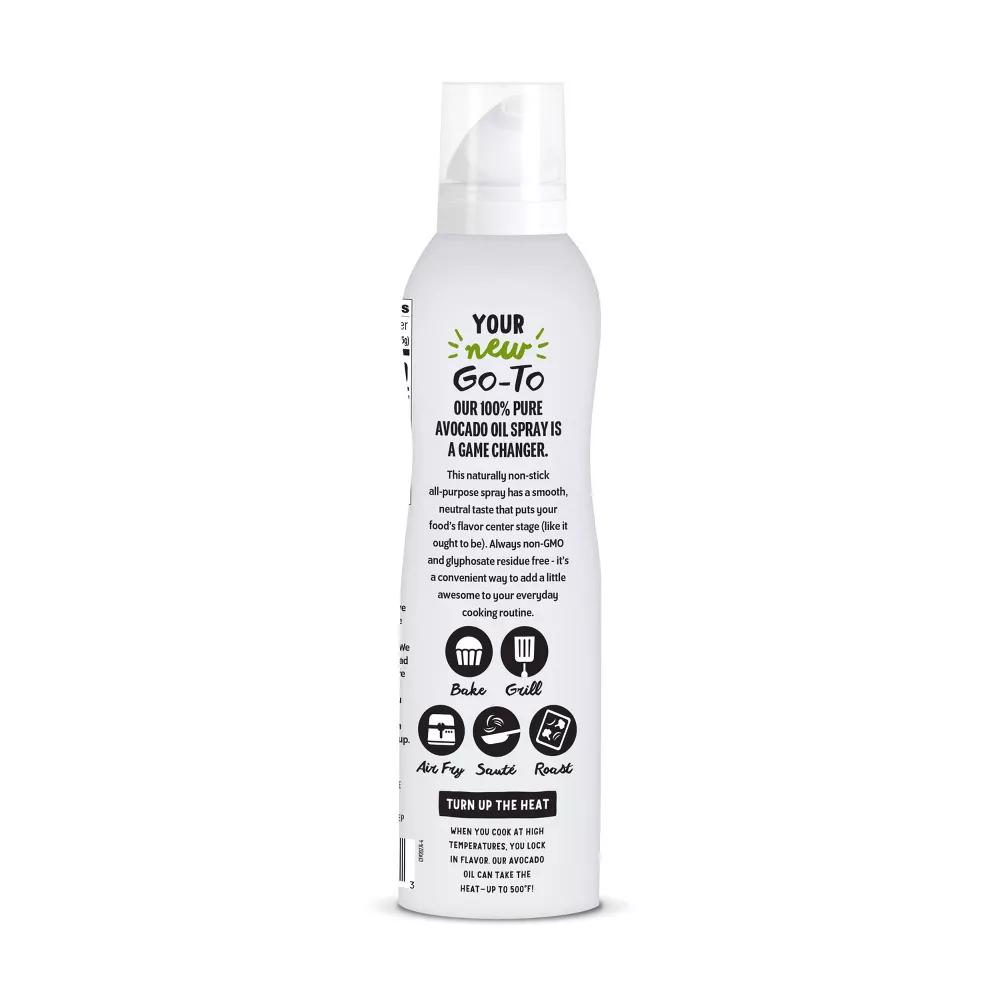 Ingredients: avocado oil.Allergens & Warnings:Warning: avoid spraying in eyes. contents under pressure. do not puncture or incinerate. do not store at room temperatures above 120˚f. do not spray or store near heat or open flame. can may explode if heated. keep out of reach of children.