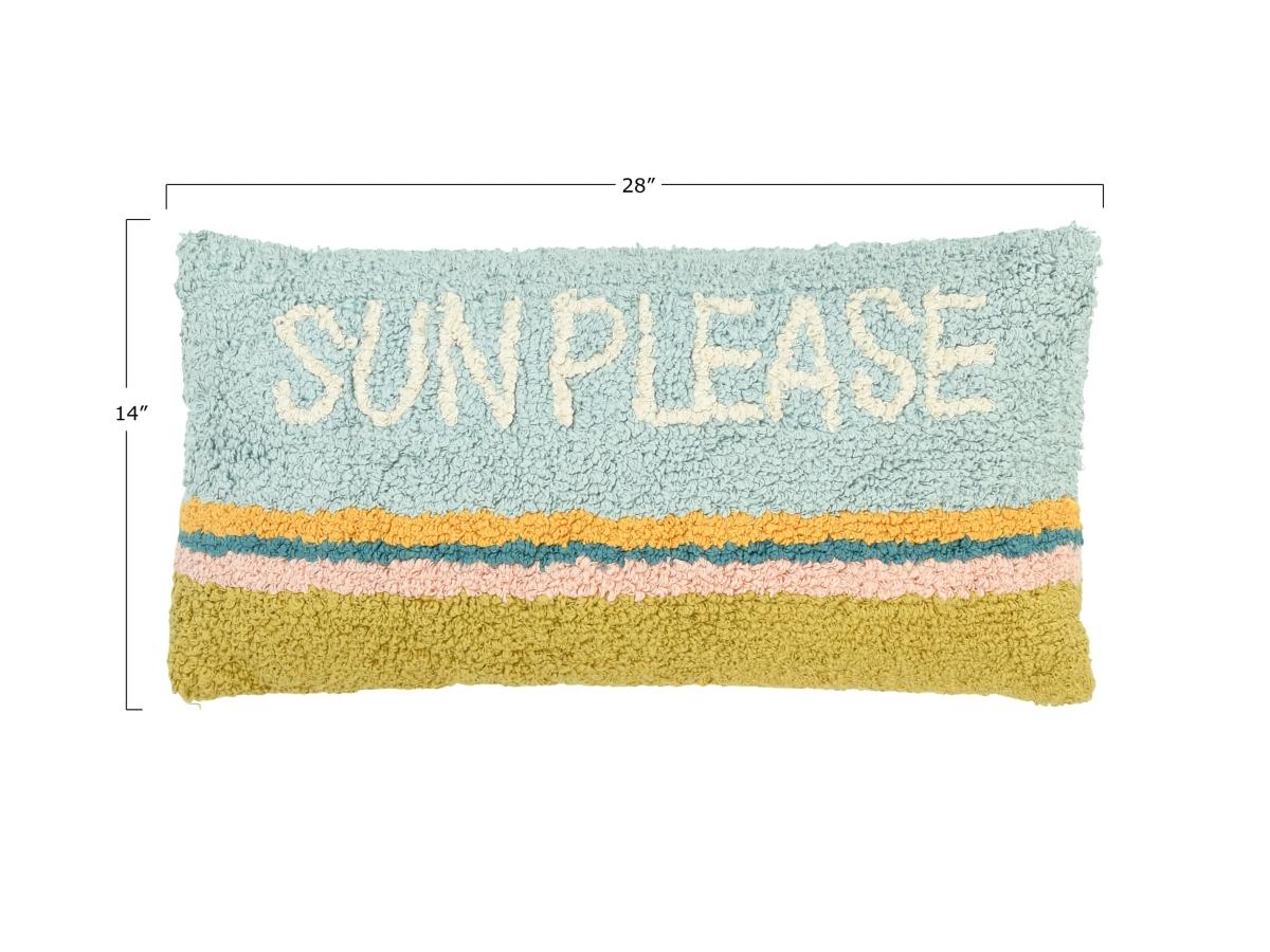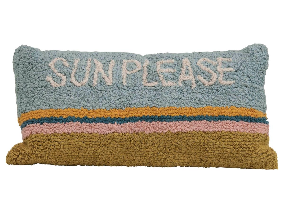 This vibrant and eye-catching lumbar pillow is the perfect addition to any home decor. The woven cotton punch hook design with "sun please" adds whimsical charm, while the cotton fill insert provides soft and supportive comfort.