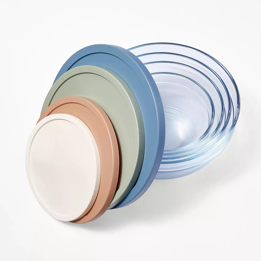 8pc Glass Set of 4 Mixing Bowls with Lids Clear - Figmint™