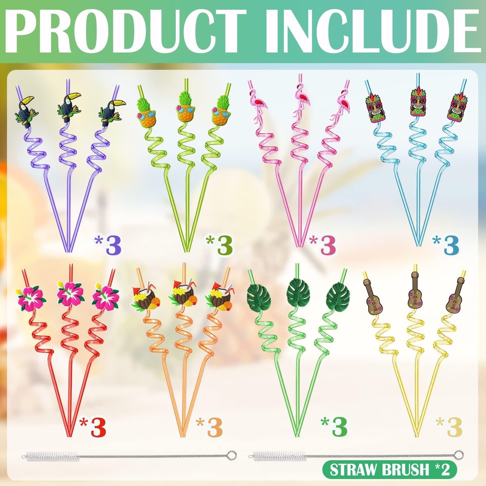 Unique Hawaiian Themed Design -- You will get 24 pieces luau pattern curling straws in 8 different designs, 3 of each design, and 2 cleaning brushes. The Hawaiian party supplies come in 8 bright colors and cute styles, enough for your summer party decoration. Disclosure: We are a participant in the Amazon Services LLC Associates Program, an affiliate advertising program designed to provide a means for us to earn fees by linking to Amazon.com and Affiliate sites.
