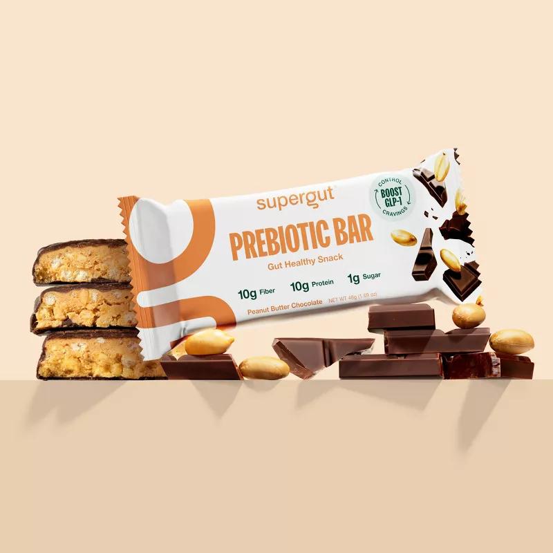 Supergut Prebiotic Bars for GLP-1 Craving Control & Digestive Health - Peanut Butter Chocolate - 10ct