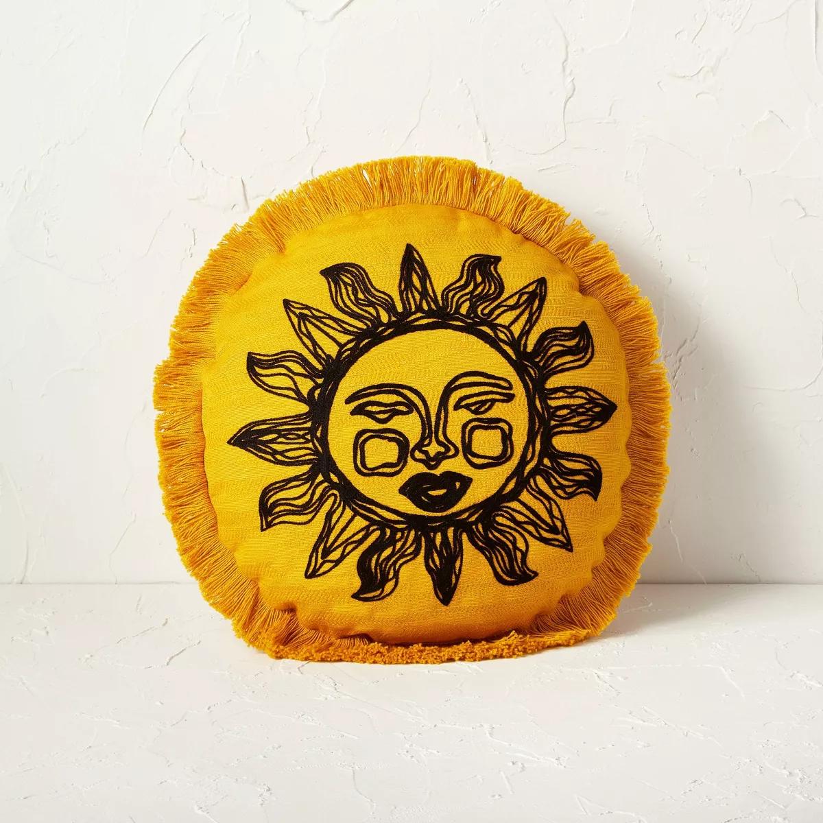 Round Embroidered Sun Fringe Decorative Throw Pillow Gold - Opalhouse™ designed with Jungalow™