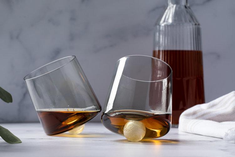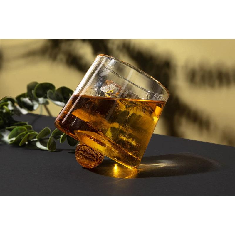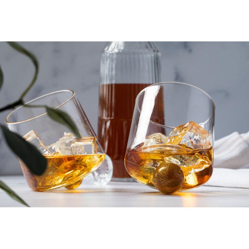 The kinetic glass is a beautiful combination of function and pure satisfaction. Elegantly designed to swivel on a 24-karat sphere. The shape of the glass increases the intimate experience of drinking liqueur, whiskey, cognac, or wine by accentuating the aroma of the liquid.