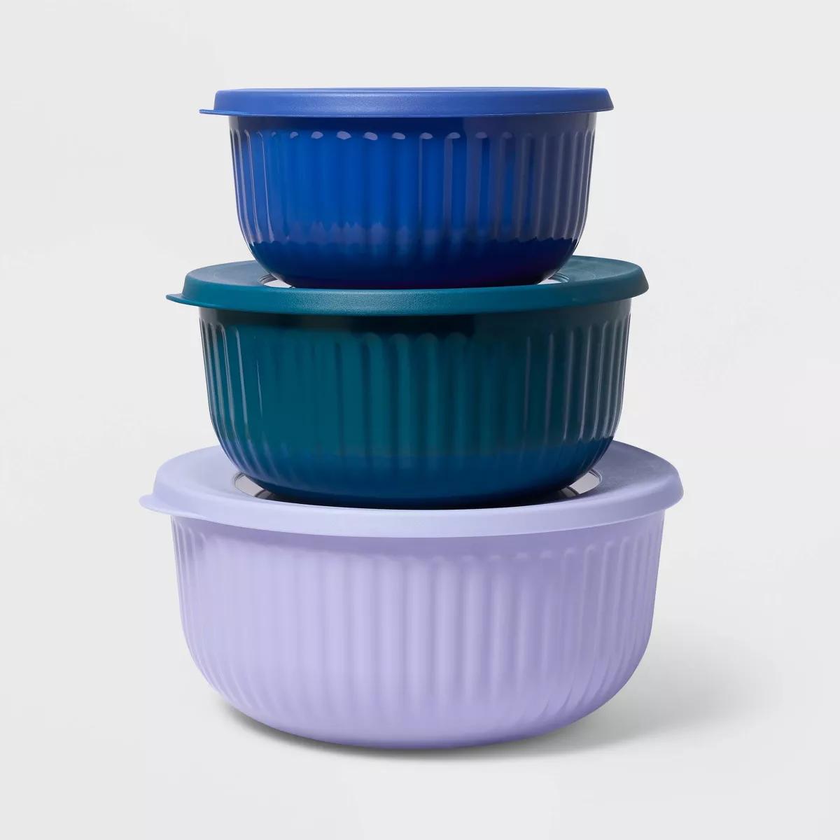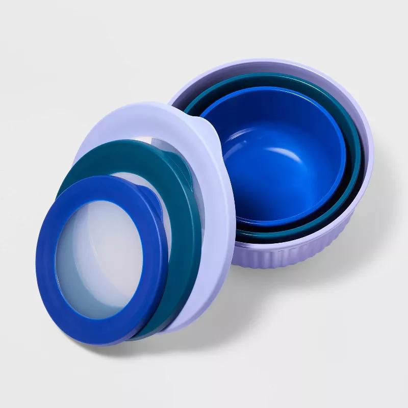 6pc (set of 3) Melamine Mixing Bowl Set Purple/Blue - Tabitha Brown for Target: Dishwasher-Safe, Lids Included