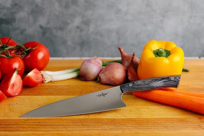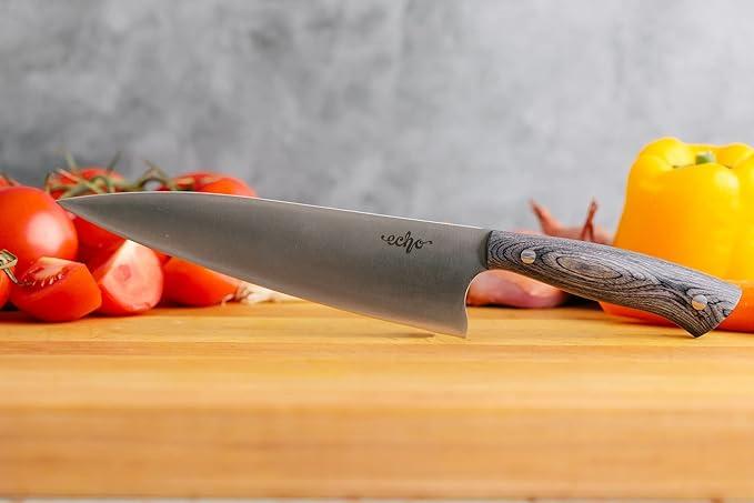 CHEFS KNIFE - The Middleton Echo Chef's Knife is an all-purpose knife with an 8 inch blade that is ideal for a wide variety of cutting tasks that is perfect for slicing, dicing, and chopping fruits, vegetables, and other foods. JAPANESE INSPIRED BLADE - Forged out of AEB-L stainless steel. Middleton Echo blades are known for corrosion resistance, hardness, and ease of sharpness. The Echo has a 60 Rockwell Hardness with a sharp 12° blade angle. Ultra thin blade measures 3mm at the heel and 0.18mm at the edge. Disclosure: We are a participant in the Amazon Services LLC Associates Program, an affiliate advertising program designed to provide a means for us to earn fees by linking to Amazon.com and Affiliate sites.
