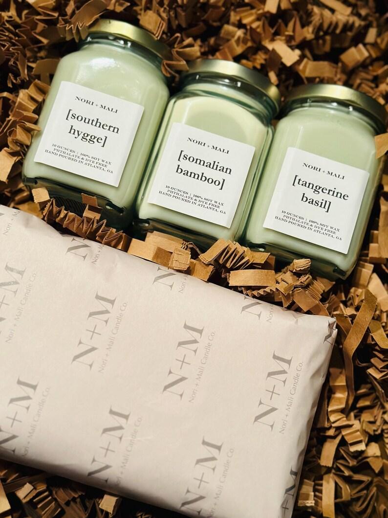 Bring a touch of tranquility to your home and share the joy of Nori + Mali with loved ones through our fragrant 10oz, 3-pack! It’s the perfect way to experience a full-size collection of our soothing scents. Just choose your top 3 favorites from the list below, add them to the “Personalization” section, and complete your purchase. We’ll have your selections on their way to you within 24-48 hours. It’s all about simplicity and serenity! Enjoy the calm.