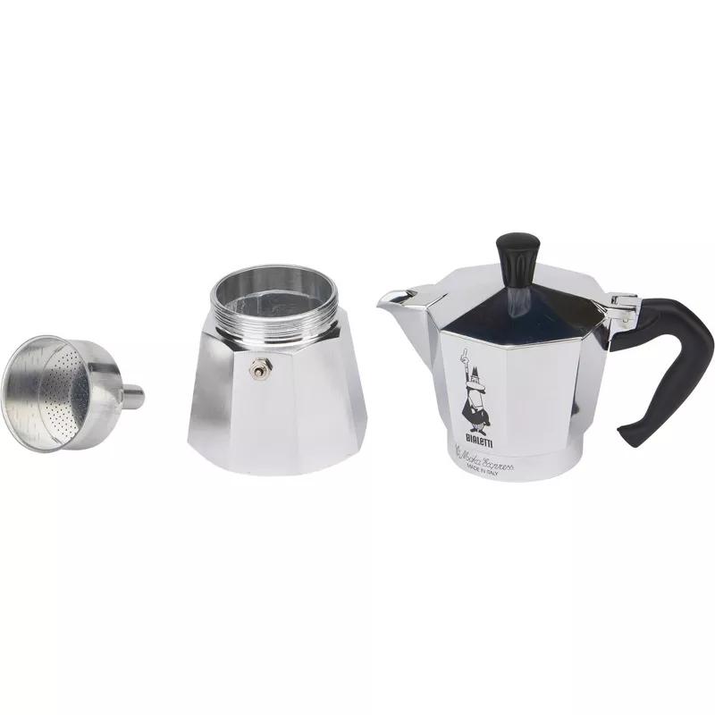 The original Moka coffee pot: Moka Express is the original stovetop espresso maker, it provides the experience of the real Italian way of preparing a tasteful coffee, its unique shape and the inimitable gentleman with mustache date back to 1933, when Alfonso Bialetti invented it.