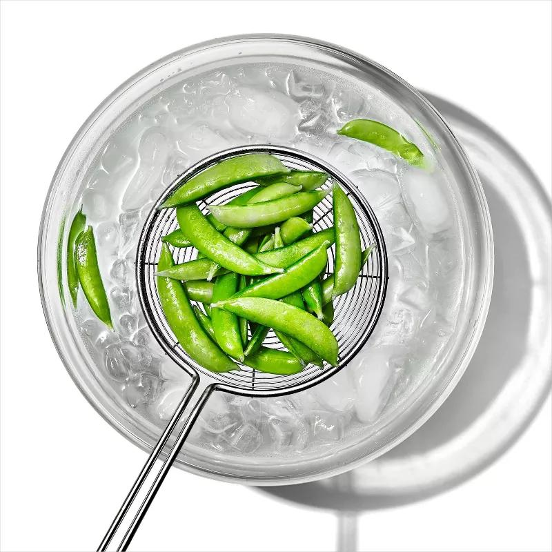 Whether you’re boiling, blanching or frying the OXO Good Grips Scoop & Strain Skimmer is the perfect tool to remove pasta, vegetables and pan or deep-fried foods while leaving all liquid behind. Featuring a wire coil design that ensures even the most delicate of foods won’t be damaged, the Skimmer’s deep, open basket is constructed for safe and efficient straining. An upgraded longer, angled handle and soft, non-slip grip enhance the Skimmer’s safety by keeping hands far away from hot oil or water.