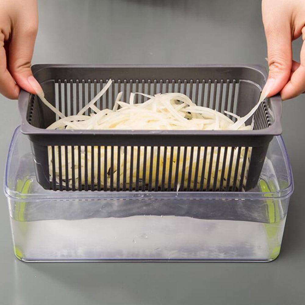 Slicer Cutter Chopper can provide you with easy lifestyle. This Vegetable Chopper is a versatile kitchen tool that is good for preparing salads, salsa, onions, garlic and more. It delivers fast, consistent results and sports an impressive capacity. Its space-saving design eliminates need for bulky equipment in small kitchens while its catch tray minimizes messes. This clear body lets you monitor progress as you cut up carrots, cucumbers, squash, zucchini and spices like ginger. Because it requires no electricity, this Vegetable Chopper can be used anywhere.