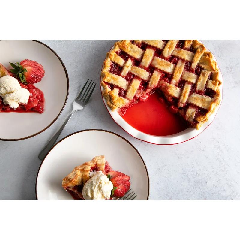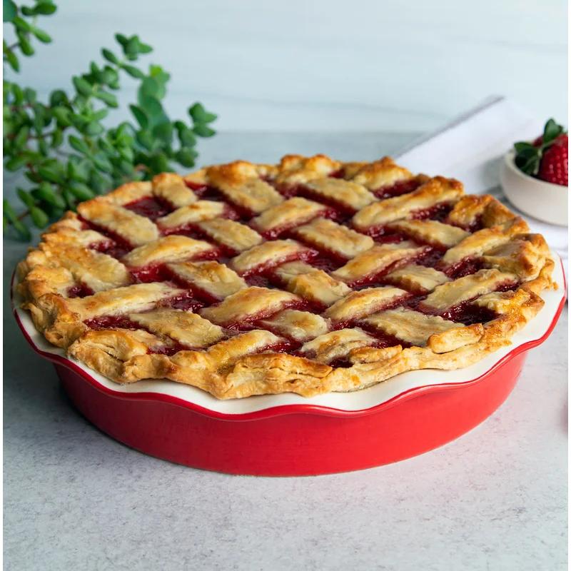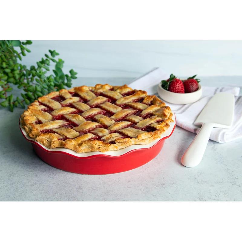 This pie dish is perfect for baking and serving sweet apple, pumpkin, and berry pies, or savory chicken and shepherd's pies. Crafted from low porosity ceramic with a vibrant, glossy finish.