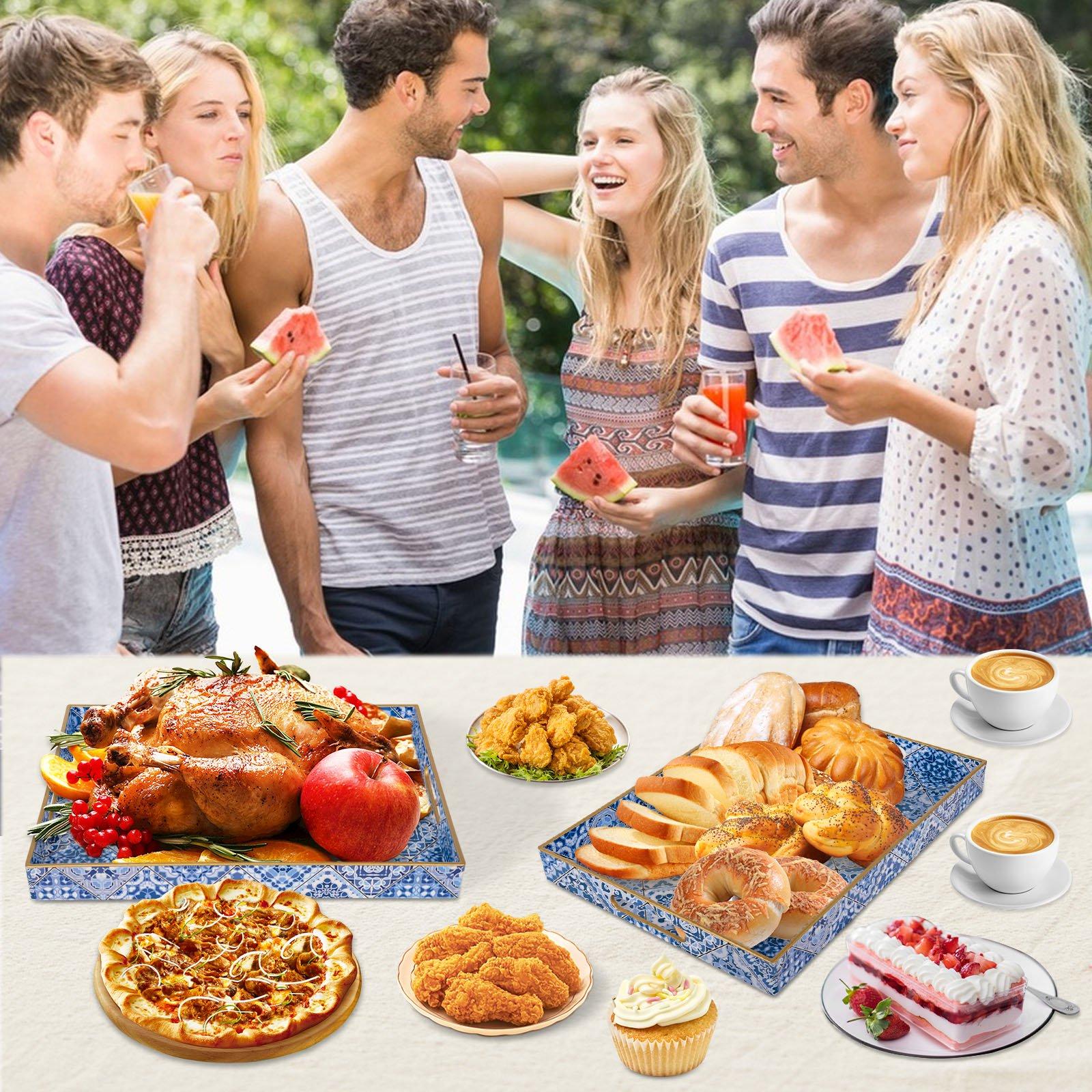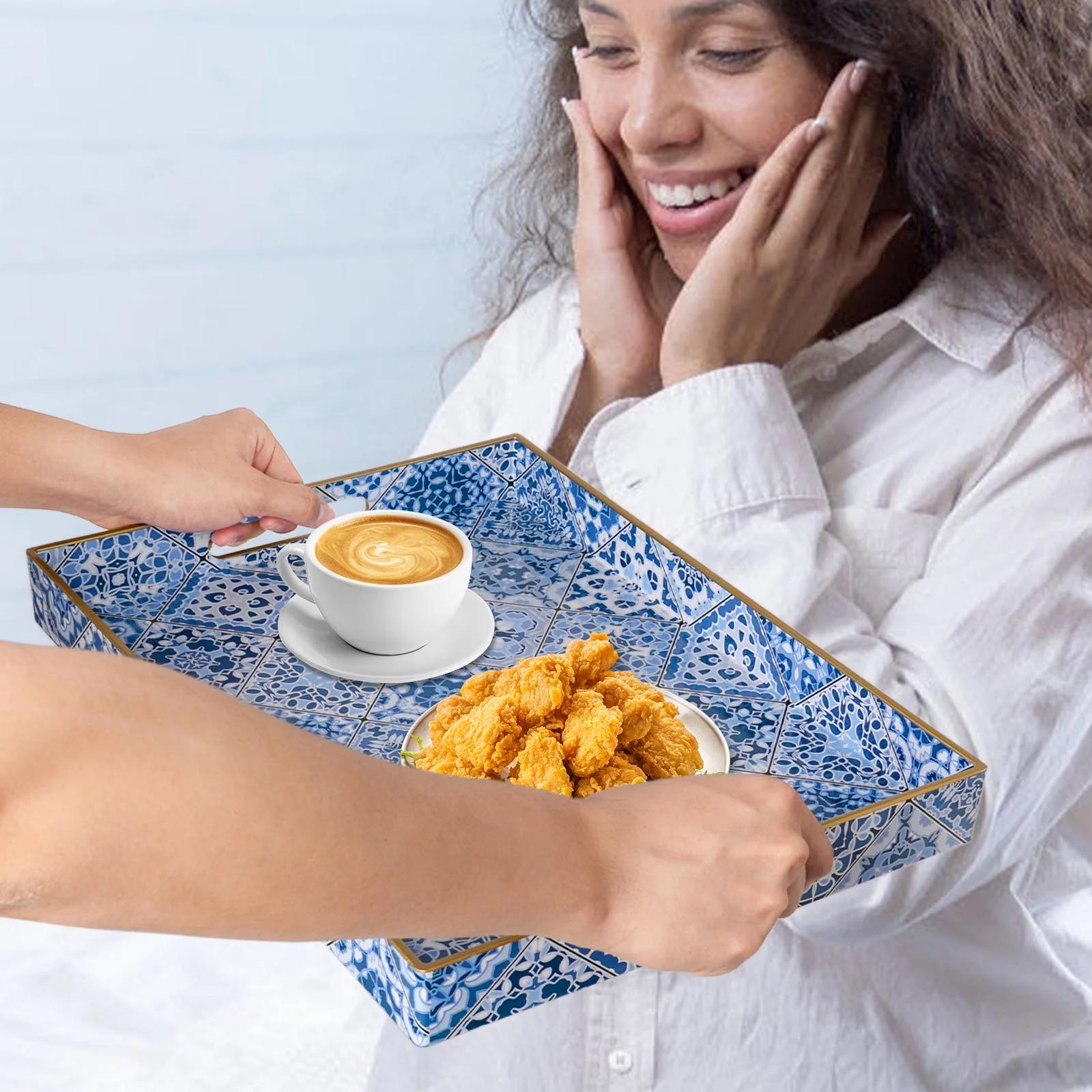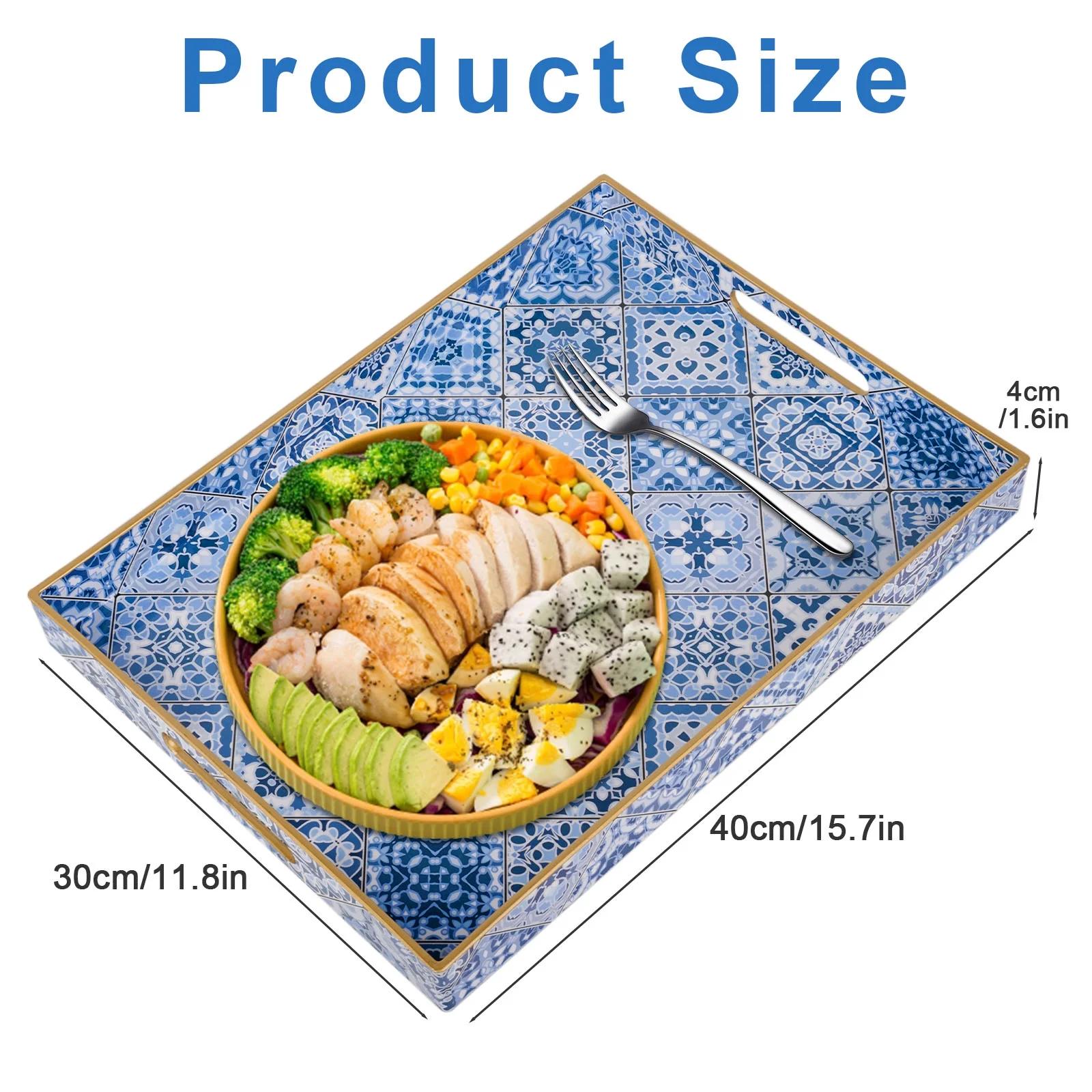 Decorative Plastic Serving Trays with Handles for Living Room, Coffee Table, Ottoman, Bathroom, Kitchen, 15.7”*11.8”*1.6", Boho Blue