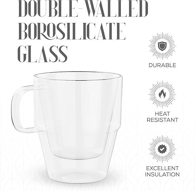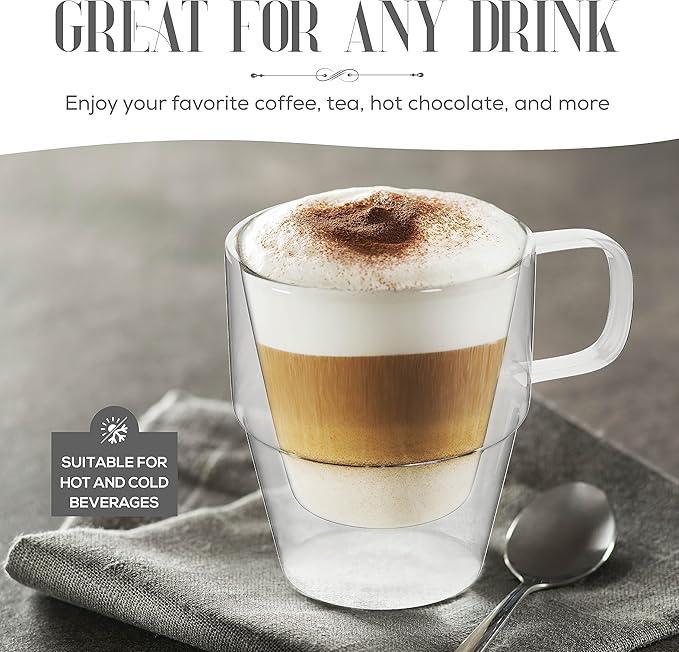 The elle decor Double Wall Clear Coffee Cups come in a set of 4 stackable espresso mugs. The double wall insulation keeps your beverage hotter or colder for longer, while the stackable feature saves space in your kitchen. Disclosure: We are a participant in the Amazon Services LLC Associates Program, an affiliate advertising program designed to provide a means for us to earn fees by linking to Amazon.com and Affiliate sites.