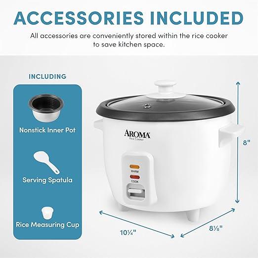 "Enjoy easy home cooking with the AROMA 6-Cup (Cooked) Pot-Style Rice Cooker. Restaurant-quality rice. Healthy meals. Delicious one-pot dishes. Prepare all this and more at the flip of a switch! Aroma takes the cook out of home cooking - turning kitchen time into your time! Help the kids with homework, get creative at play time or pick up that novel you've been waiting to dive into. All while delivering hot, hearty and healthy meals the entire family will love.This convenient cooker's compact capacity perfectly cooks 2 to 6 cups of any variety of rice. Once the rice has finished, it will automatically switch to Keep-Warm so there's no need for monitoring or stirring. It's also perfect for oatmeal, chili, jambalaya, soups and so much more! And when the cooking is done, the inner cooking pot and all accessories remove for easy cleanup in the dishwasher." Disclosure: We are a participant in the Amazon Services LLC Associates Program, an affiliate advertising program designed to provide a means for us to earn fees by linking to Amazon.com and Affiliate sites.