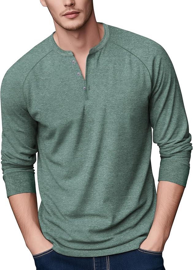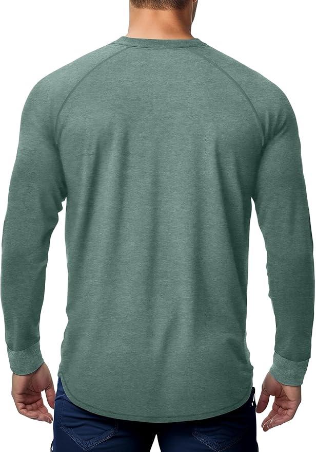 Mens Long Sleeve Henley Shirts Stretch Casual 3 Button Tee Baisc Plain