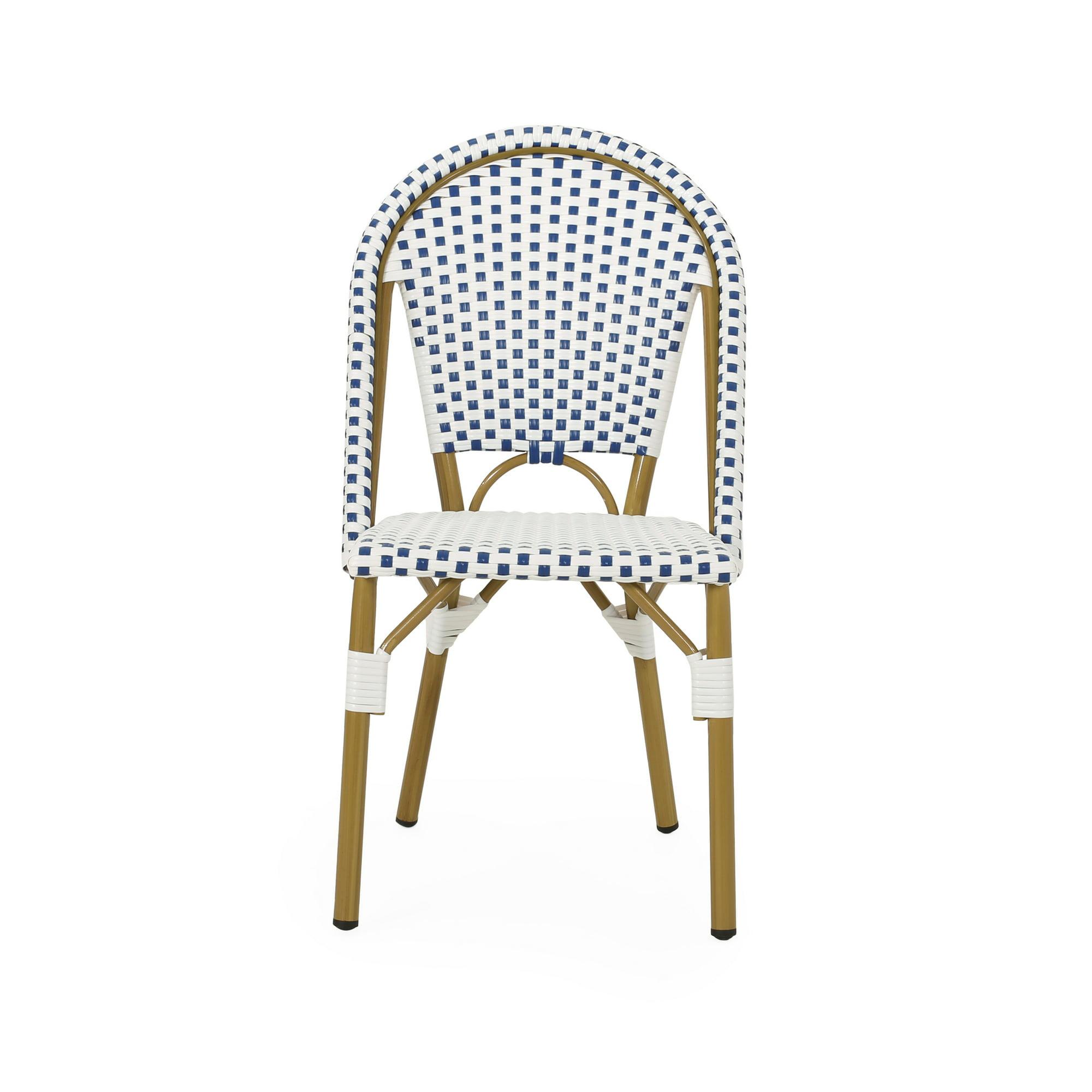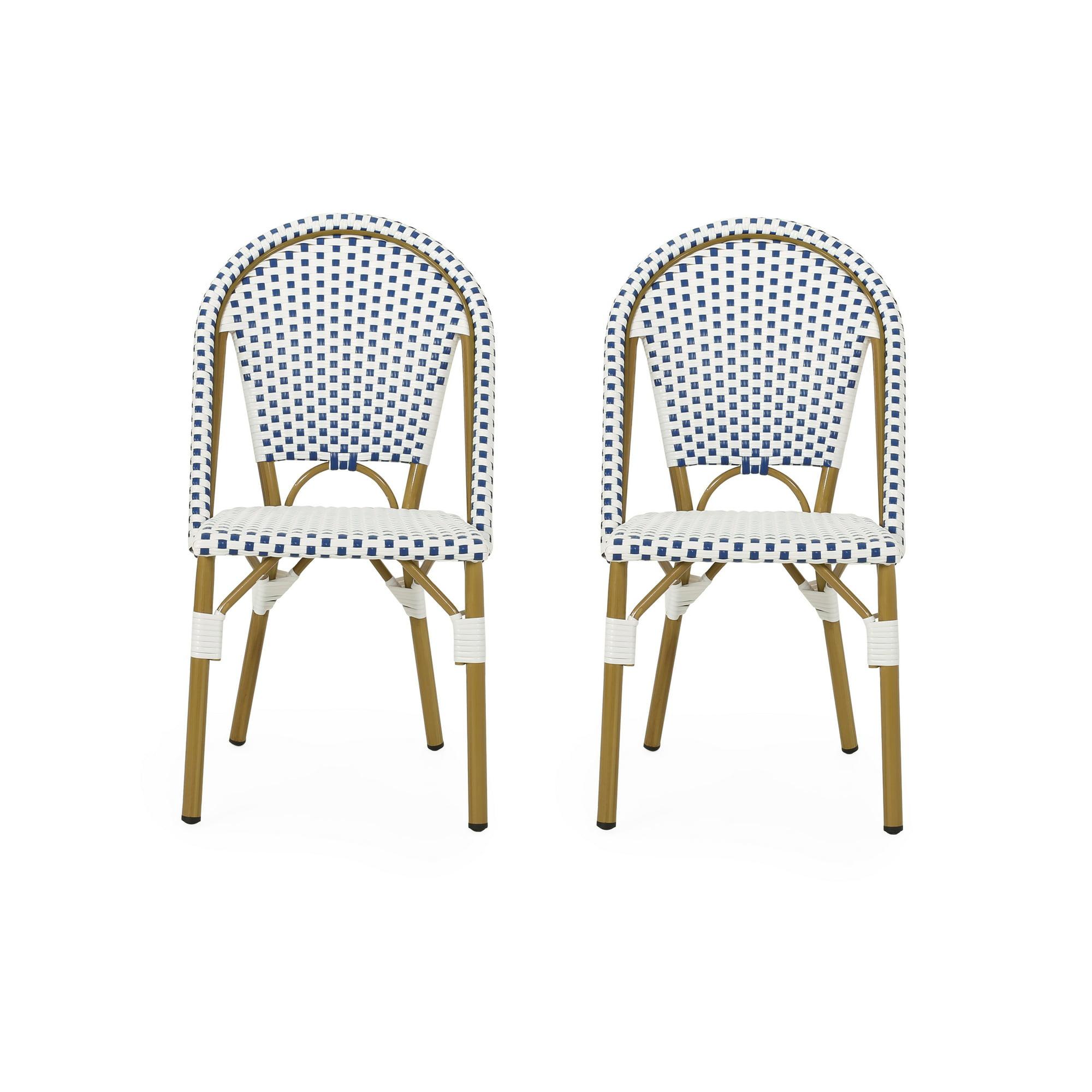 Noble House Elize Aluminum & Faux Rattan Bistro Chairs in Blue/White (Set of 2)