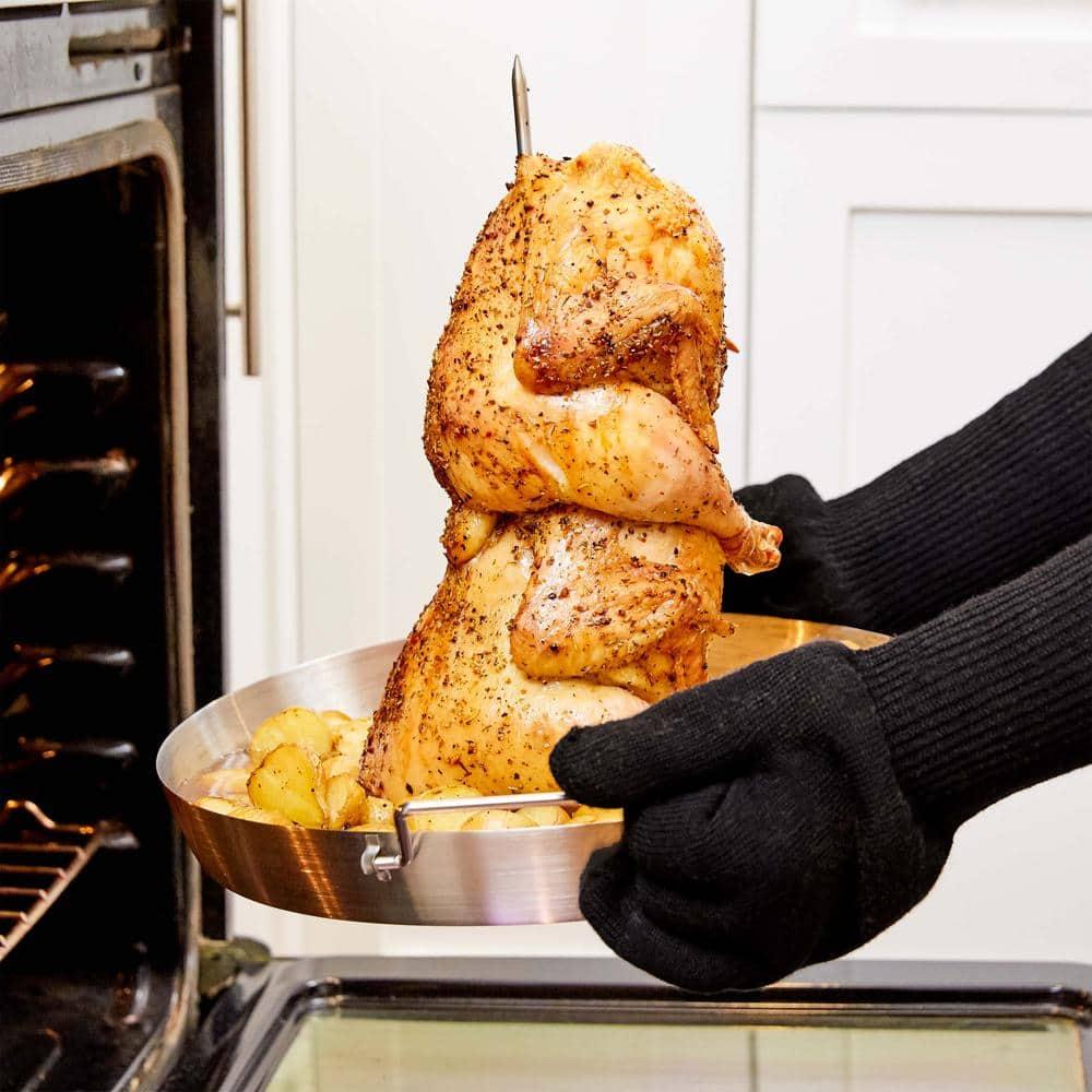 Quality food grade stainless steel tray and rack will hold up against repeated washing and use. Assembly in under 30-seconds. Place the veggie rack in the tray pan and choose desired spike height and you're ready to go. Stack layers of marinated meat for grilling and easy to slice and serve directly off the spike. its all types of cookers including charcoal, gas, pellet, smokers, komado and ovens.