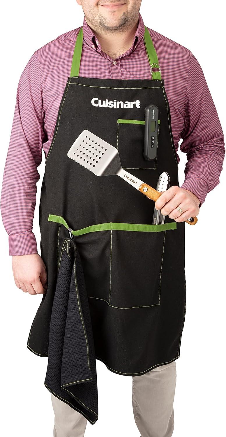 Cuisinart CFA-156 BBQ Apron and Magnetic Towel Set, Adjustable Grill Apron with Large Front Pockets