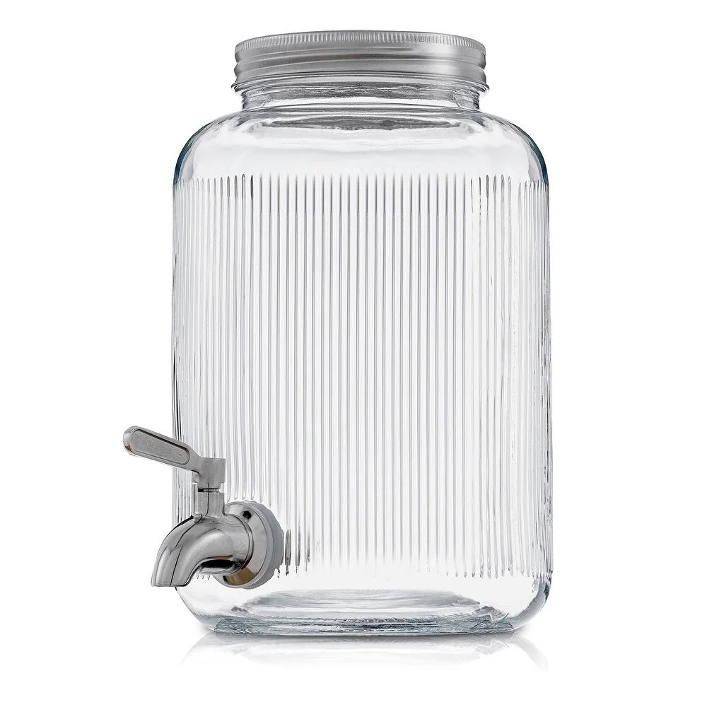 Glass Fluted Drink Dispenser with Spigot, Ice Infuser, & Fruit Infuser - 1 Gallon - 1 Gallon