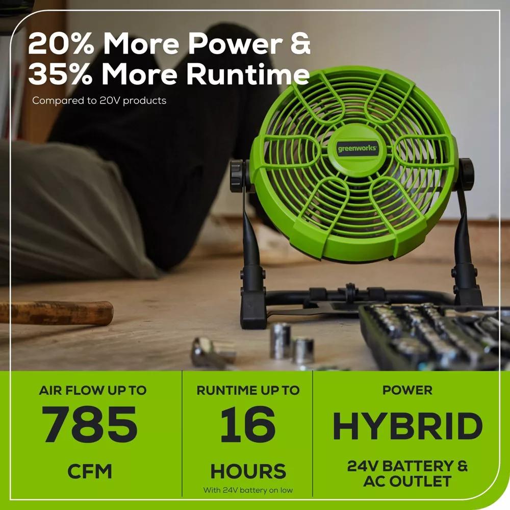 Greenworks POWERALL 24V 10" Cordless Hybrid Utility Fan Kit with 2.0Ah Battery and Charger Green