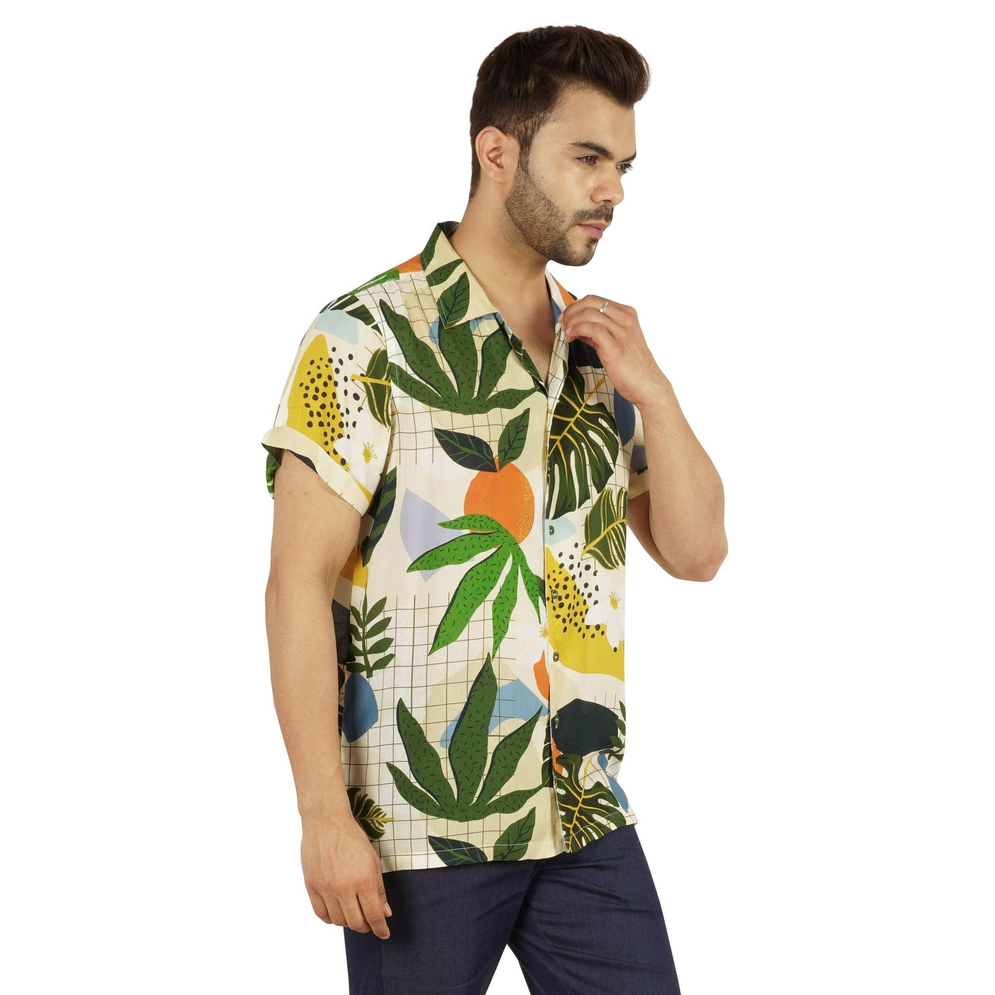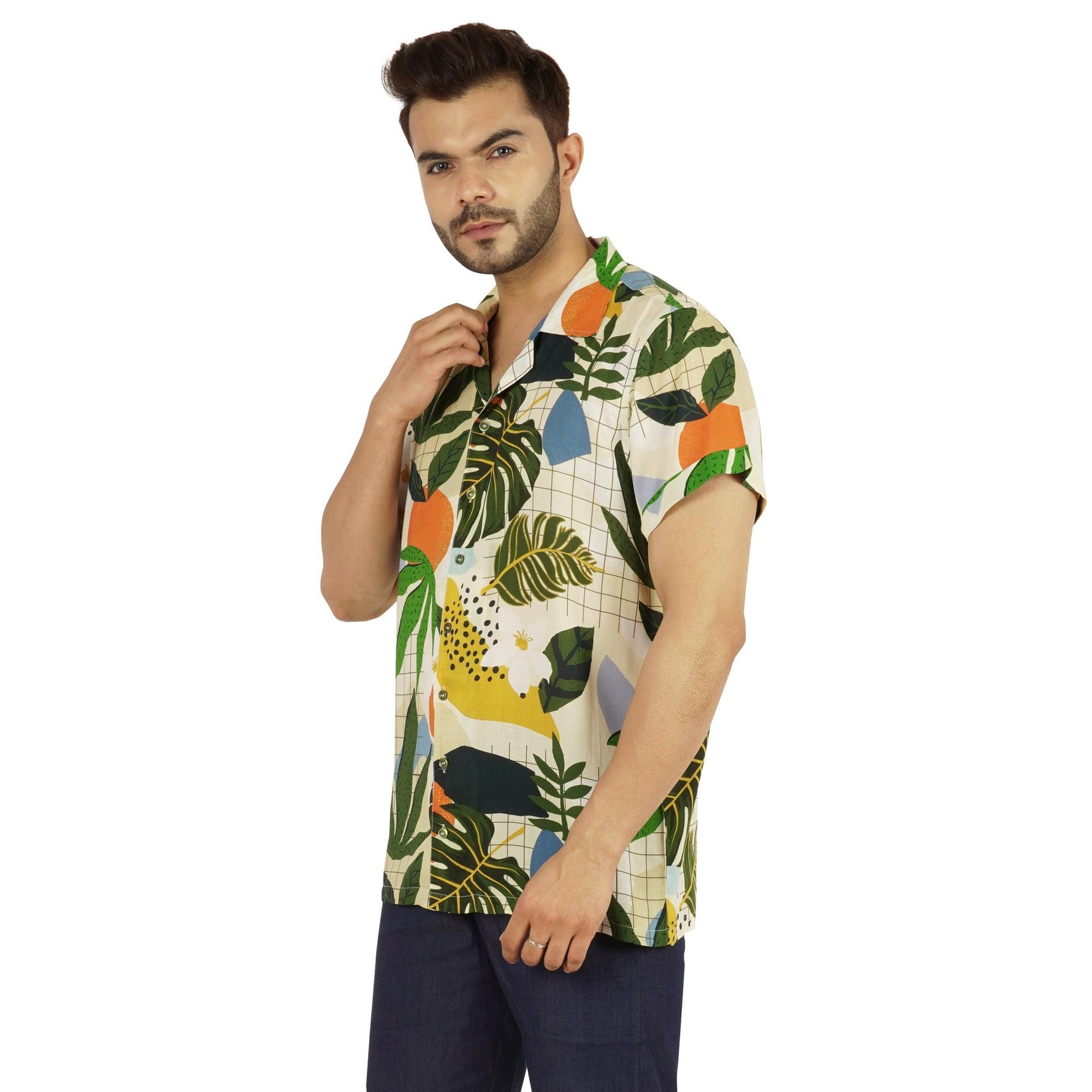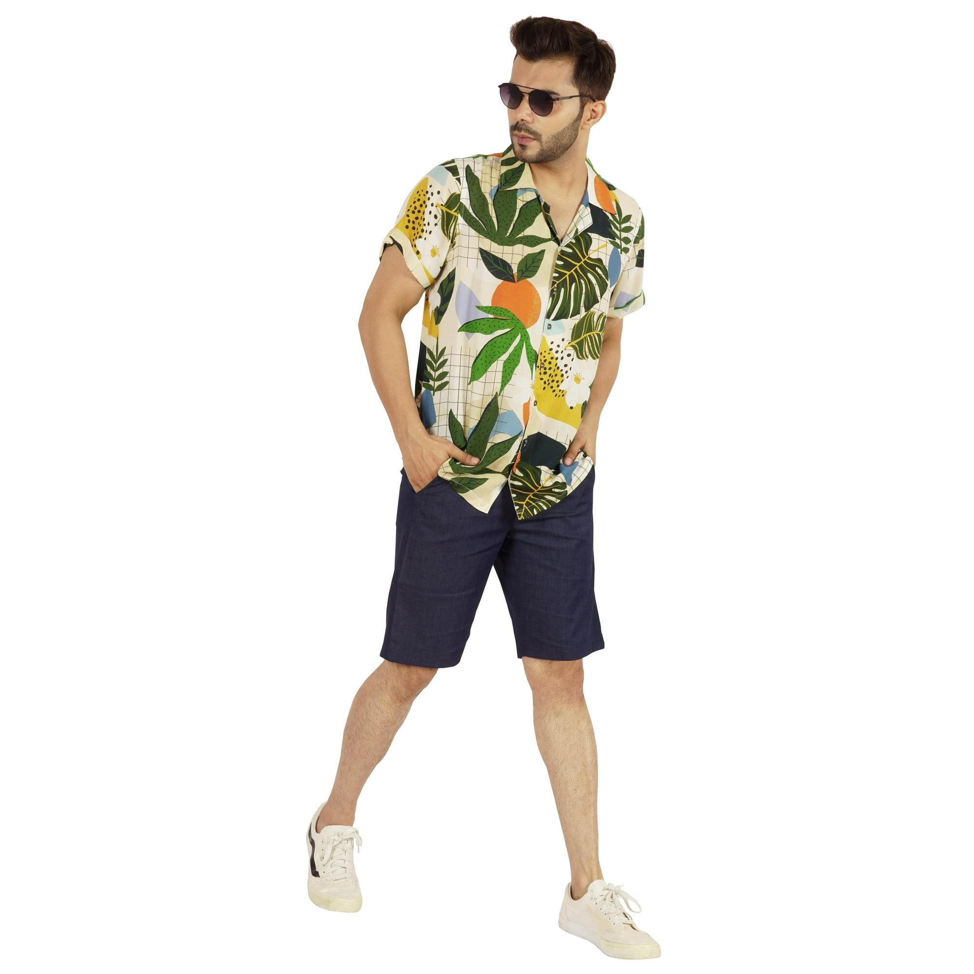 Inkmeso Short Sleeve Printed Hawaiian Casual Button Down shirt for mens Beach Party shirt
